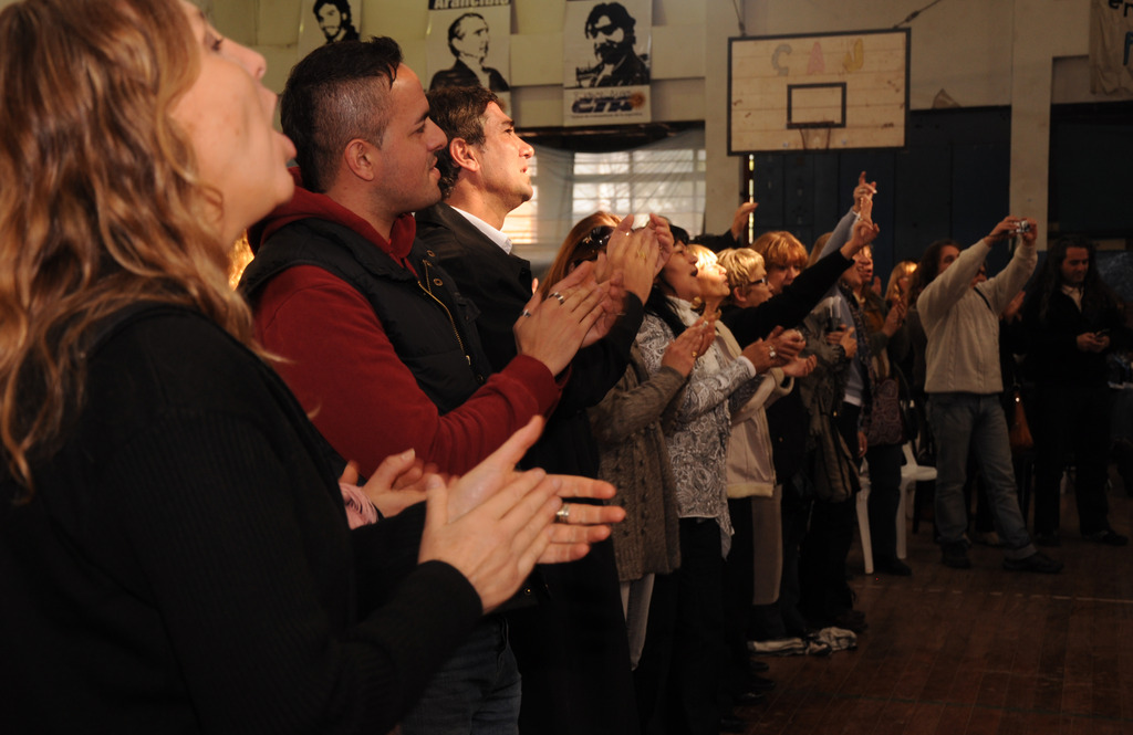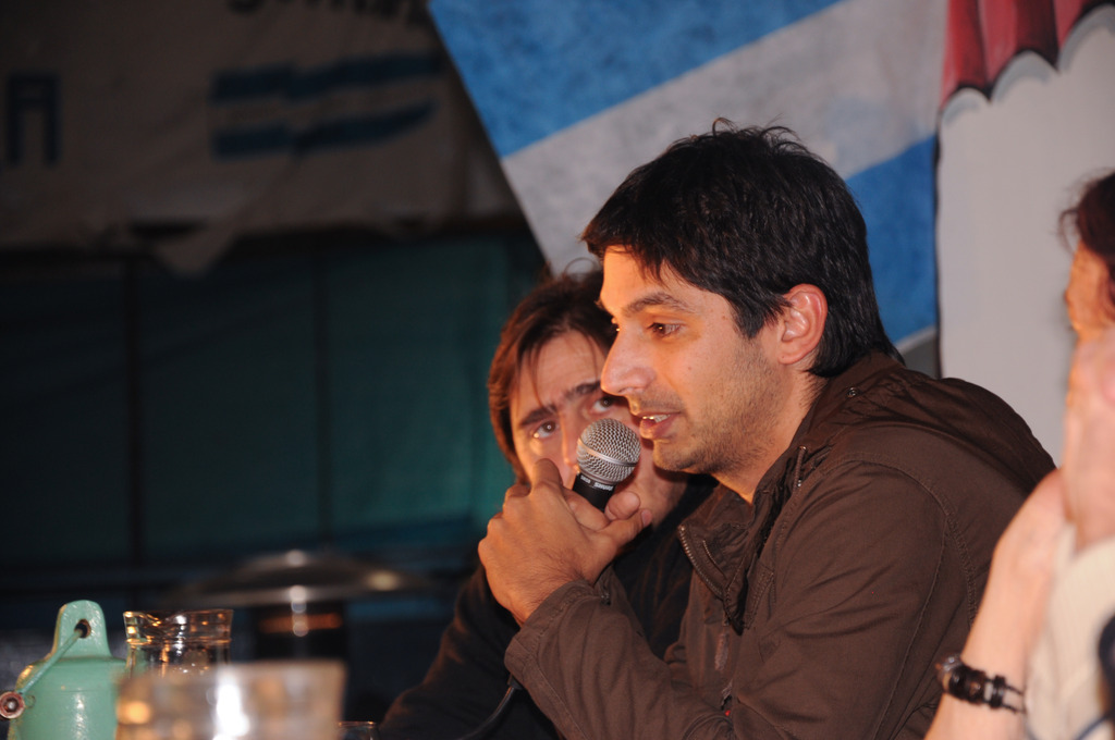 En tercer lugar, fue el turno de Charly Pisoni. Elogió al SUTEBA por “siempre estar de pie y siempre ser coherente, porque los docentes siempre estuvieron donde tenían que estar y donde se los necesitaba.” Pisoni narró la historia de la formación de HIJOS allá por 1995: “Cuando nosotros nos formamos, realmente pensábamos que era imposible llegar a este momento que estamos viviendo hoy en materia de derechos humanos.” Luego, dijo: “A mi me toco vivir, un momento muy especial en mi vida y que nunca pensé que iba a llegar, que fue la sentencia a los genocidas que secuestraron, torturaron y desaparecieron a mis papás Rolando Pisoni e Irene Bellocchio.” Charly sostuvo que muchas cosas de las que parecían imposibles se van haciendo posibles y festejó dos de las grandes victorias que tienen que ver con los derechos humanos: “Una es que hoy los pibes que nacen no mueren en la pobreza, sino que tienen una Asignación Universal por Hijo, y esa es una de las grandes victorias de este momento histórico que hemos conquistados todos, principalmente la CTA que lo ha impulsado desde siempre. Y por otro lado, otra gran victoria, que no hubiera sido posible sin la voluntad política de los gobiernos de Néstor y Cristina, y es la no represión a la protesta social, porque es, justamente, el respeto al derecho a la vida que es el derecho más fundamental que hoy se está tratando de tutelar desde el Estado. Esa orden de decirle a las fuerzas de seguridad: las marchas, sean de nuestro tinte ideológico o de otro, como ha sucedido con los cortes que hicieron los ruralistas, no se deben reprimir, no se deben usar armas de fuego porque no queremos más muertes.” Finalizó diciendo: “Estos logros que hemos conquistado, debemos seguir profundizándolos. Vamos por más.”