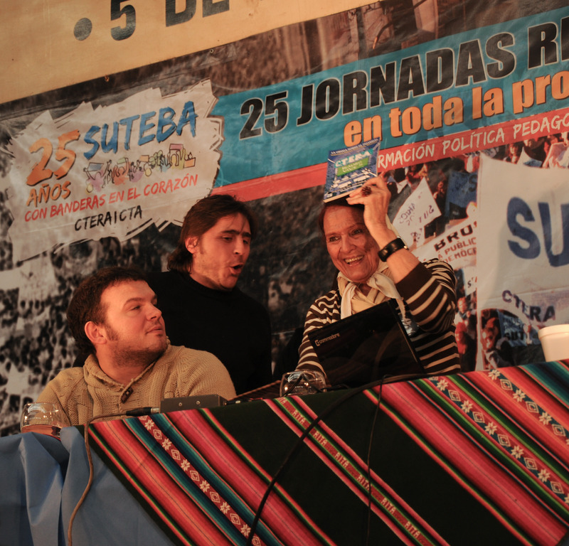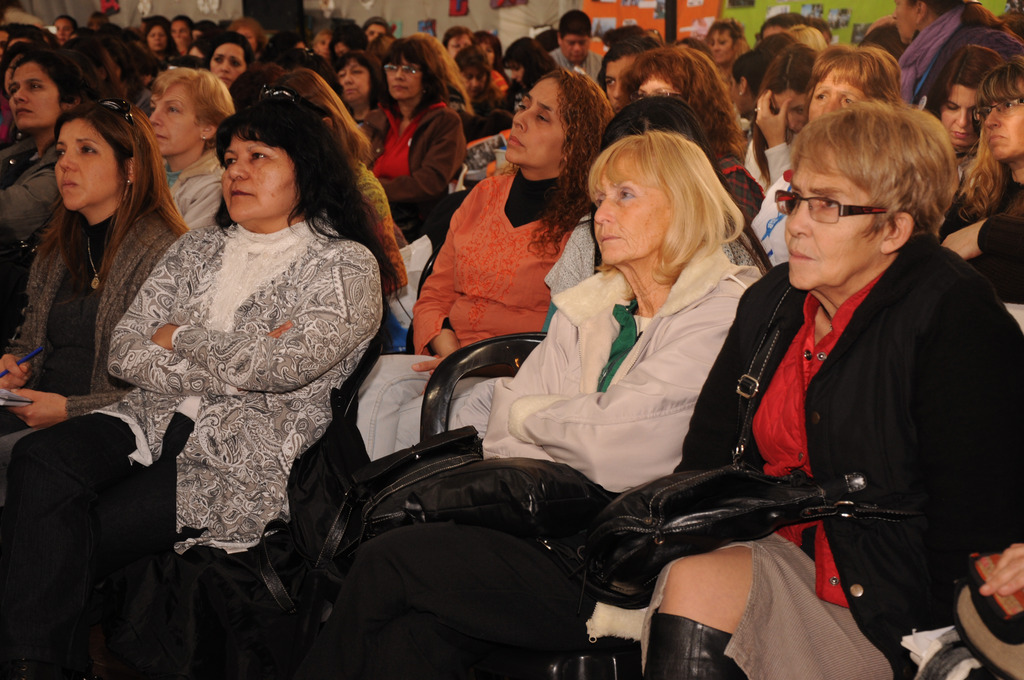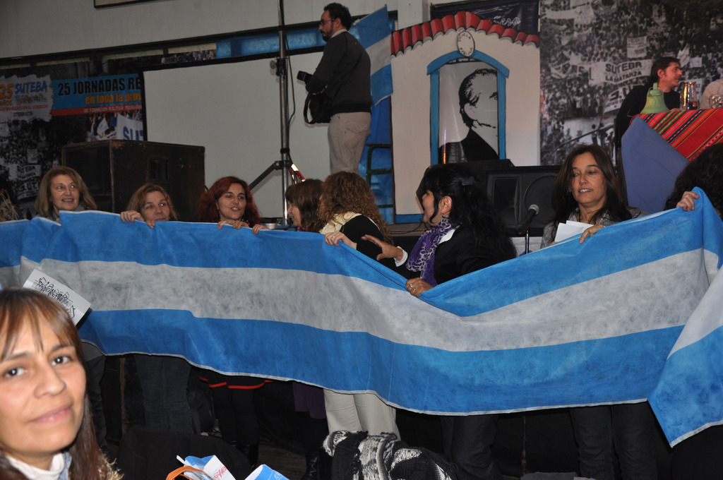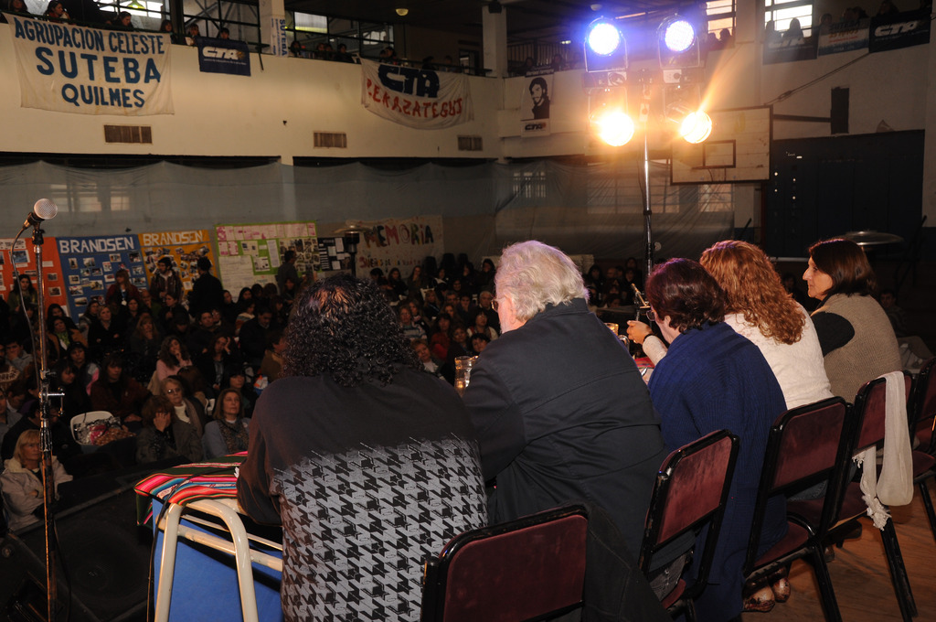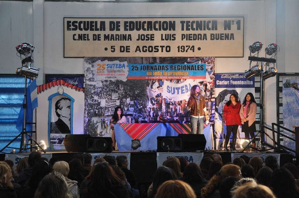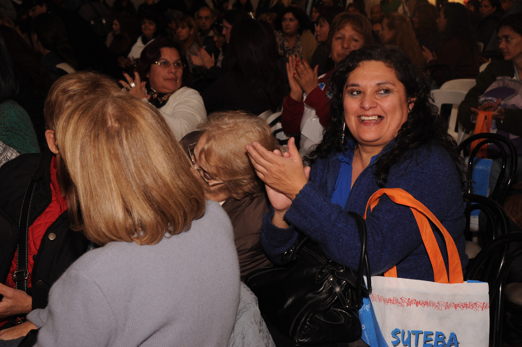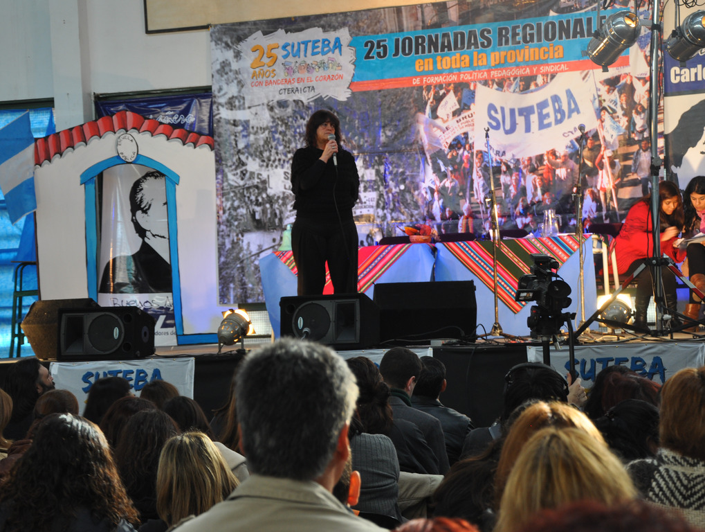 Al final de la mañana, fue el turno de Stella Maldonado. Habló de la fundación de CTERA, del SUTEBA, de lo logrado y de lo que falta lograr. “Nuestros logros no deben impedir ver que cuestiones nos faltan”, reflexionó Maldonado. También habló de que los derechos son interdependientes y están interrelacionados. Luego dijo: “La recuperación de la autoridad estatal generada en los últimos años, como por ejemplo, Néstor Kirchner descolgando el cuadro de Videla y la re estatización de las AFJP, a pesar de estos avances, todavía hay una fuerte desautorización del Estado como garante del bien común. Y sobre todo, todavía tenemos un largo camino que recorrer en la idea de un nuevo Estado”. Sobre esto, puntualizó que hay que “preguntarse de qué manera significativa todavía impacta esta concepción del aparato estatal en nuestro trabajo.” Por eso, cerró invitando a “seguir trabajando mucho más para construir una democracia representativa como la que tenemos, en una democracia participativa.”