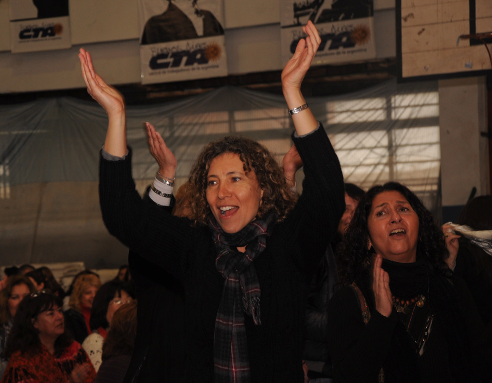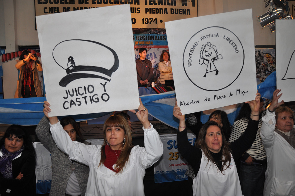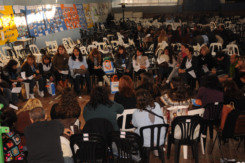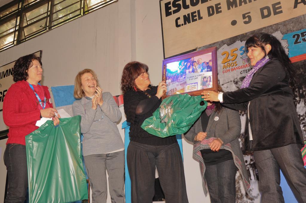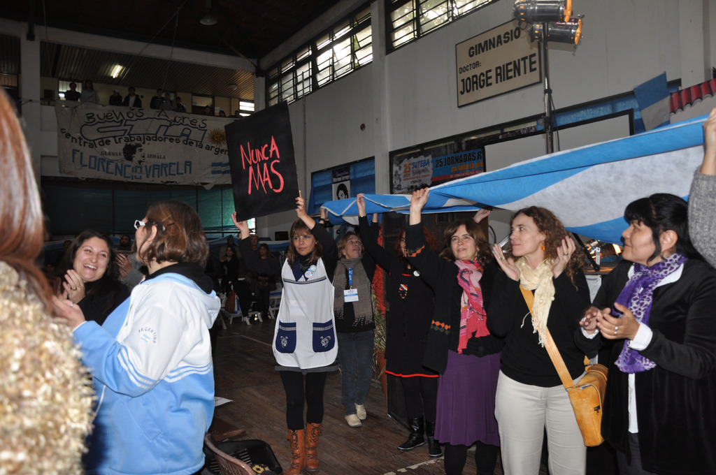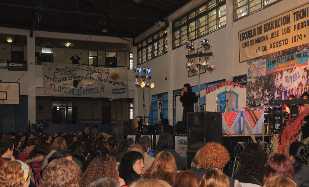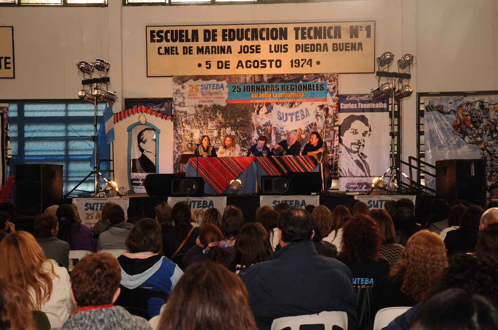 Al final de la mañana, fue el turno de Stella Maldonado. Habló de la fundación de CTERA, del SUTEBA, de lo logrado y de lo que falta lograr. “Nuestros logros no deben impedir ver que cuestiones nos faltan”, reflexionó Maldonado. También habló de que los derechos son interdependientes y están interrelacionados. Luego dijo: “La recuperación de la autoridad estatal generada en los últimos años, como por ejemplo, Néstor Kirchner descolgando el cuadro de Videla y la re estatización de las AFJP, a pesar de estos avances, todavía hay una fuerte desautorización del Estado como garante del bien común. Y sobre todo, todavía tenemos un largo camino que recorrer en la idea de un nuevo Estado”. Sobre esto, puntualizó que hay que “preguntarse de qué manera significativa todavía impacta esta concepción del aparato estatal en nuestro trabajo.” Por eso, cerró invitando a “seguir trabajando mucho más para construir una democracia representativa como la que tenemos, en una democracia participativa.”