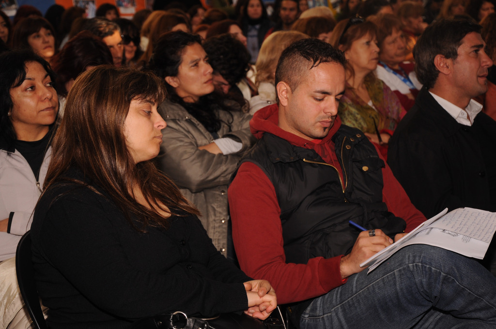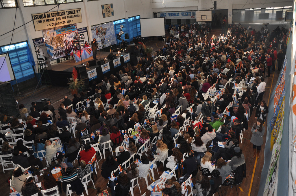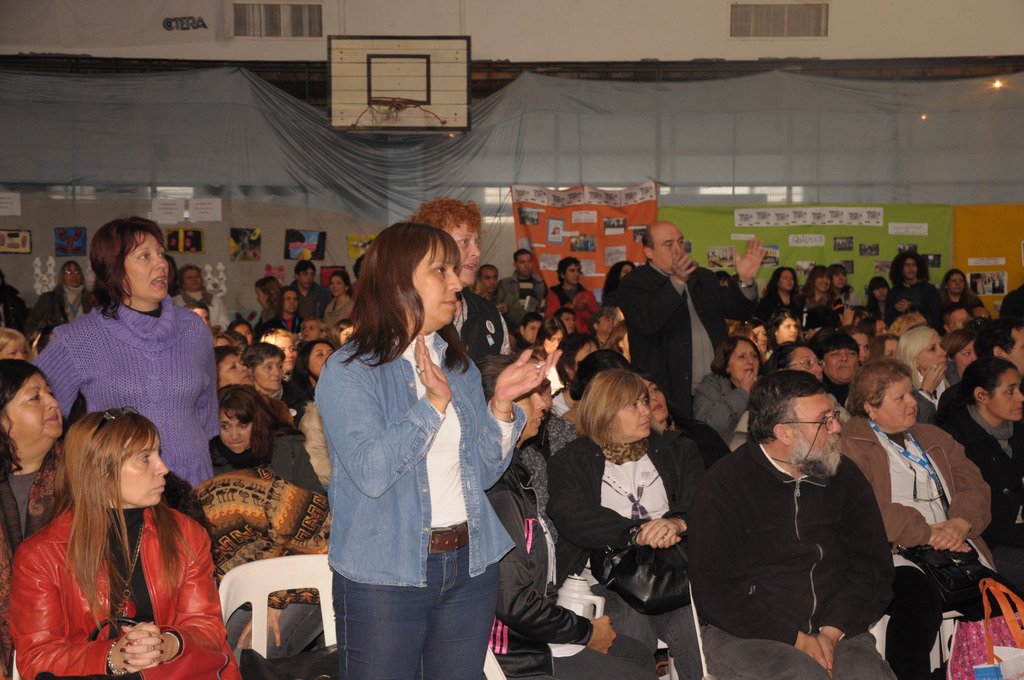 Luego del histórico video que resume los 25 años del sindicato, la compañera Marcela Placona, maestra de la Escuela Nº 45 de Florencio Varela, recitó unas palabras de Eduardo Galeano e hizo que el comienzo sea más que emotivo, poético, sincero y lleno de amor por la profesión. La buena predisposición de los casi 1000 compañeros que asistieron dieron un hermoso marco para este arranque.
