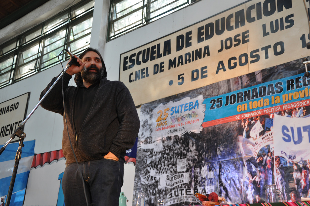 Luego, tomó la palabra el Secretario General del SUTEBA, Roberto Baradel. Habló de la historia del sindicato, de las necesidades que hoy tienen los docentes, de las conquistas en la escuela pública y lo que falta por hacer. También mencionó que ya han participado más 8000 docentes durante las 17 jornadas. “Los trabajadores de la educación tenemos una historia muy rica, llena de lucha y pelea, de coherencia y dignidad”, reflexionó. “Hay que discutir qué escuela queremos”, arengó. Y por último dijo: “El día que elegimos ser docentes, elegimos transformar el mundo. ¡Por eso compañeros, con unidad y con fuerza vamos a triunfar!”.