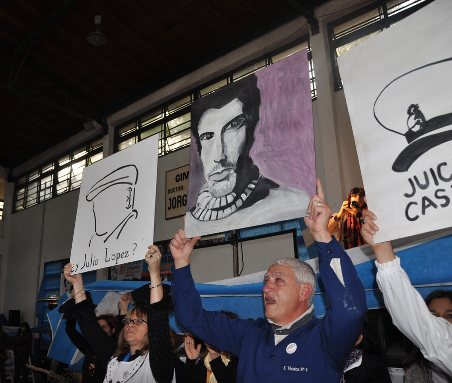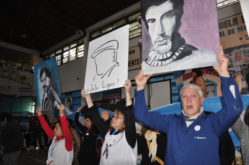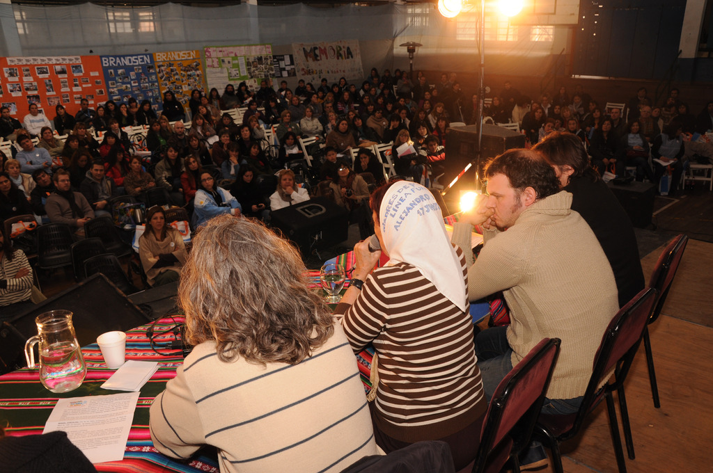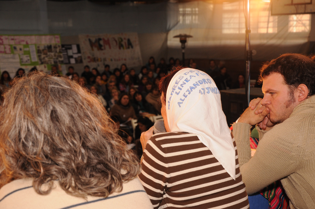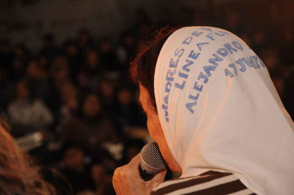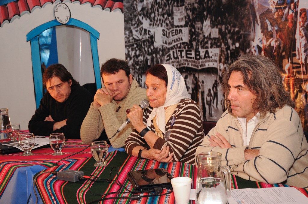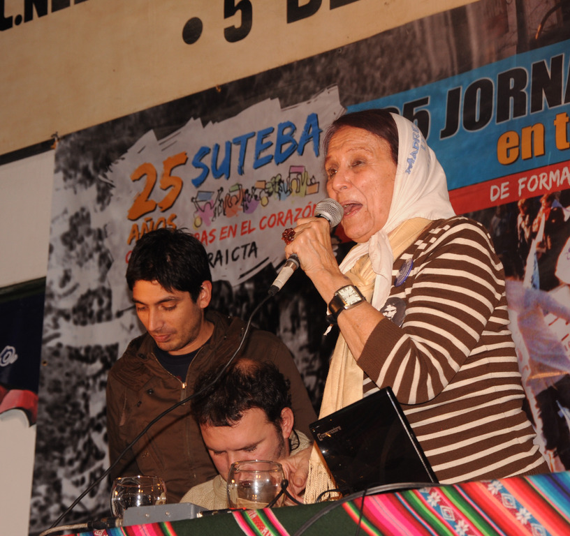 La primera en hablar fue Tati Almeida. La integrante de Madres Línea Fundadora contó la historia de su hijo Alejandro, estudiante de medicina y desaparecido cuando tenía 20 años: “Alguien puede decir: ‘Los habrán desaparecido por algo’. Yo con mucho orgullo digo que si, los desaparecieron porque eran militantes políticos, porque tenían un compromiso político y social.” Tati contó el momento en que encontró los poemas que escribía su hijo: “Yo no sabía que escribía poesías, como tampoco sabía nada de nada, porque Alejandro me preservaba, me cuidaba y no me contaba absolutamente nada de su militancia. Yo conocí la otra faceta de Alejandro a través de sus poesías.” Luego, contó que ella viene de familia “gorila” y militar, por ende, cuando desapareció su hijo en el ’75 les echó la culpa a los peronistas. Luego, cuando llegaron los militares en el ’76 ella pensó que iba a encontrar a su hijo. “Alejandro me parió, me hizo dejar atrás todo ese pasado y transformarme en otra mujer”, reflexionó Tati. En relación a Néstor Kirchner, dijo: “Por fin, en 2003, encontramos a un presidente que nos escuchó, porque recibir nos recibieron todos, pero él fue el primero que anuló las leyes y se declararon anticonstitucionales y hoy estamos viviendo estos momentos históricos que, sinceramente, no pensábamos, las Madres, que íbamos a vivir.”