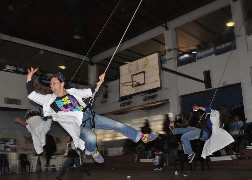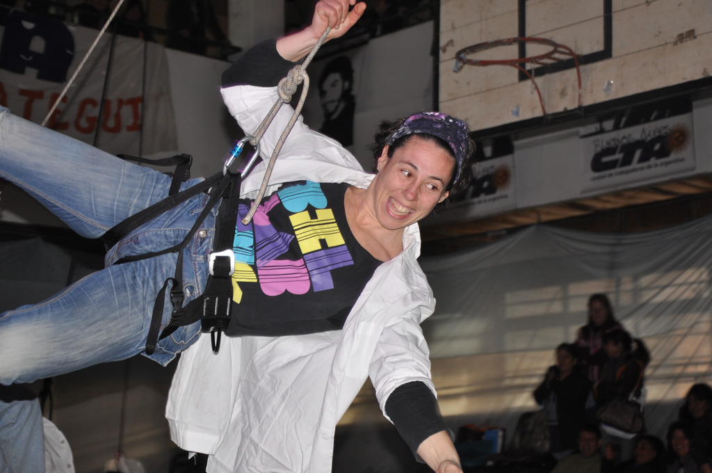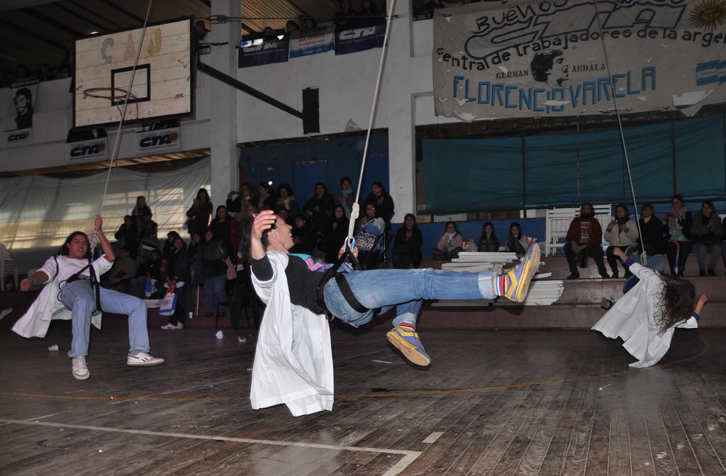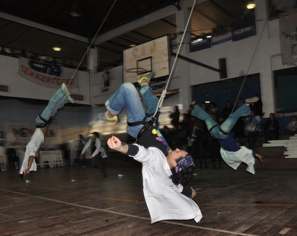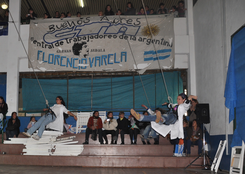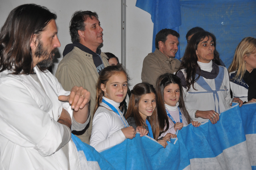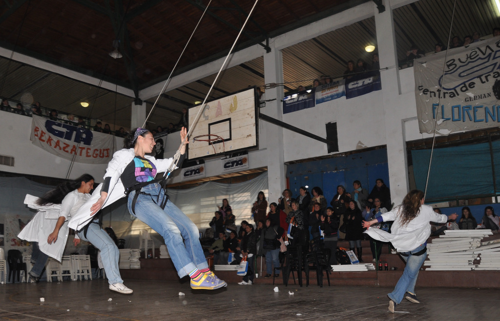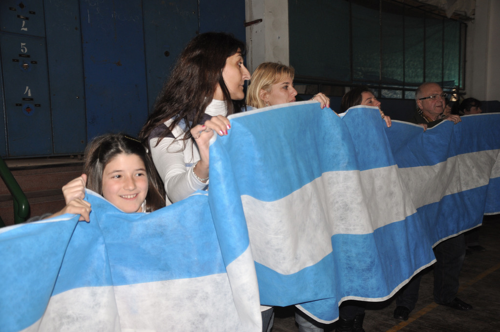 Al final del día, ingresó una gran bandera Argentina mientras se iban nombrando y entrando carteles con los logros sociales que se alcanzaron en este último tiempo y luego, alumnos de una escuela de circo, realizaron un espectáculo colgándose de sogas en una performance que impresionó a todos los presentes.