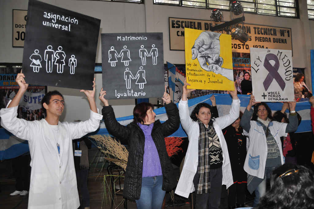 Por último, fue el turno de Pablo Llonto quien arremetió contra los medios: “No tenemos ninguna duda que la influencia de los medios es altísima, no sólo en la toma de decisiones electorales, sino en la toma de decisiones de vida. Nosotros estamos convencidos de que otro sería el rombo de la educación, de la economía o del deporte si los medios de comunicación tuviesen otro tipo de conducta, por supuesto, volcada a otro tipo de valores, especialmente, a la solidaridad, al no individualismo y al no consumo”.