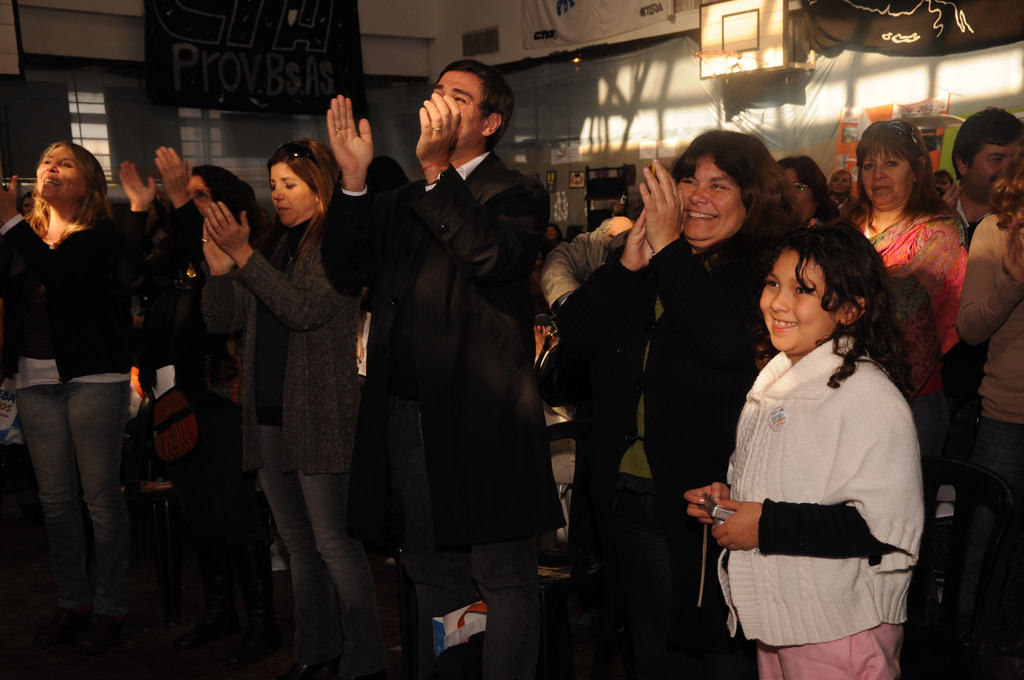 Durante su intervención, Hugo Yasky hizo hincapié en “los logros alcanzados como producto de la lucha del campo popular que, en todos esos años de neoliberalismo, no abandonó la resistencia”, y luego, agregó: “Aunque éramos pocos los que pensábamos en términos de defensa del patrimonio nacional, nos opusimos sistemáticamente a la entrega de la educación pública, logrando que no se avanzara en la municipalización que hubiera traído a nuestro país la actual situación de la educación en Chile, con los bauchers donde el padre elige la institución de acuerdo aun semáforo que se publica de cada escuela, que cuando los alumnos no obtienen el puntaje esperado en las pruebas estandarizadas se les pone la luz roja, y al salir un alumno de la escuela, se lleva el financiamiento, condenando a esa comunidad educativa a la falta total de recursos”. “Somos parte de un sindicalismo que no entrega las banderas de lucha, que no quiere ser cómplice de la construcción de un país de desocupados, que no quiere ser cómplice de la entrega de una Nación y de un pueblo a los designios del imperialismo”, recordó Yasky sobre lo que sostuvieron durante toda la época menemista. Luego, se enorgulleció: “Hoy nosotros podemos decir con orgullo que fuimos y somos parte de esa construcción que es este tiempo de cambio que estamos viviendo. Porque en América Latina, esta destrucción social de la que habló Arroyo, en Argentina tiene estos números, pero en otros países de nuestra América tiene todavía un rostro mucho más duro y descarnado porque eran países que venían de la historia de la pobreza estructural. Nosotros perdimos mucho, pero teníamos una base que nos permitió, aún cuando llegamos a la base del cráter, tener parte de lo que antes se había construido, por ejemplo la escuela pública: con todo lo que nos destruyeron, con todos los golpes que recibimos, hoy la escuela pública de la Argentina está en el nivel más alto de América Latina".
