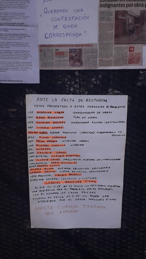 Por todo esto, la comunidad educativa se encuentra realizando una permanencia pacífica en la Escuela, reclamando y haciendo visible esta problemática.