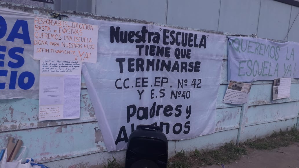 La comunidad educativa de la Escuela Primaria N°42 de Florencio Varela, acompañada por el SUTEBA, le está pidiendo al Gobierno Provincial que termine la obra del edificio que tiene suspendida hace 5 años.