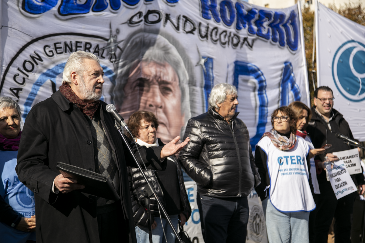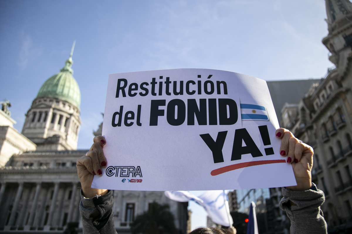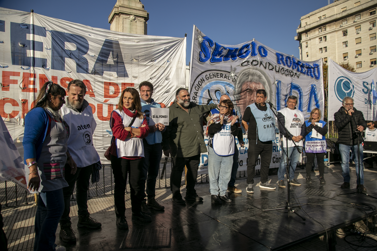 "La unidad de lxs Trabajadorxs del país es condición indispensable para construir la fuerza para derrotar estas políticas de ajuste y hambre. Creemos en la Escuela Pública y la defendemos lxs Docentes y las familias en unidad. No nos resignamos, no resignamos ni nuestra historia ni nuestras luchas, por eso más temprano que tarde vamos a conseguir la restitución del FONID y en unidad vamos a derrotar las políticas de este Gobierno. Si hoy no dictaminan, seguimos estando en las calles", concluyó Baradel.
