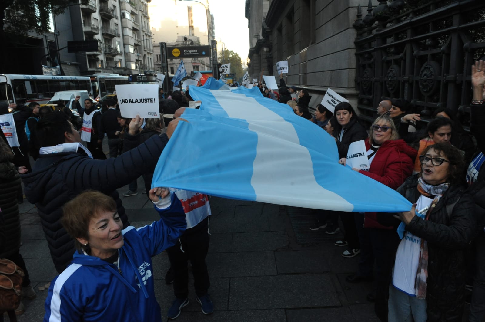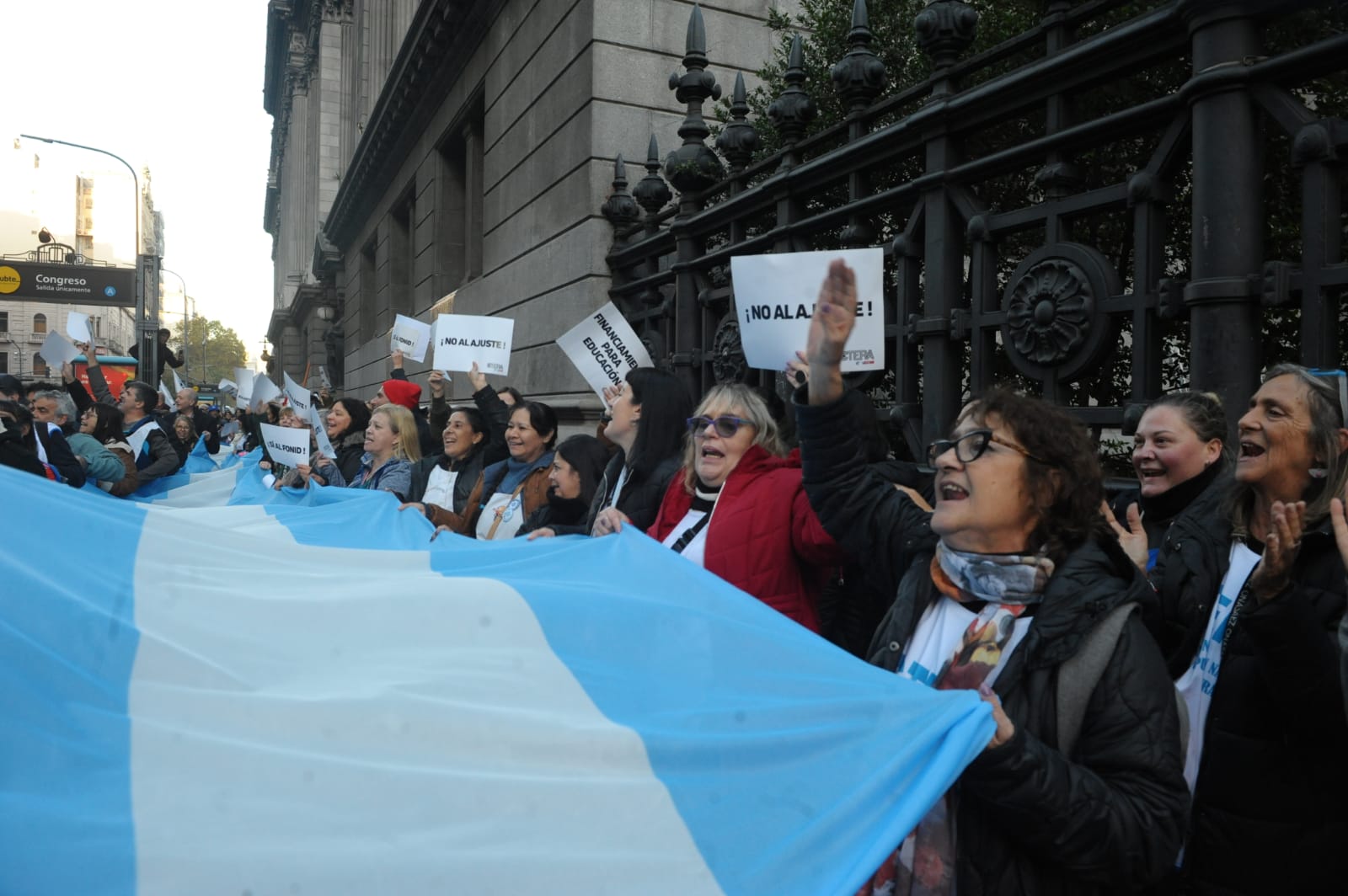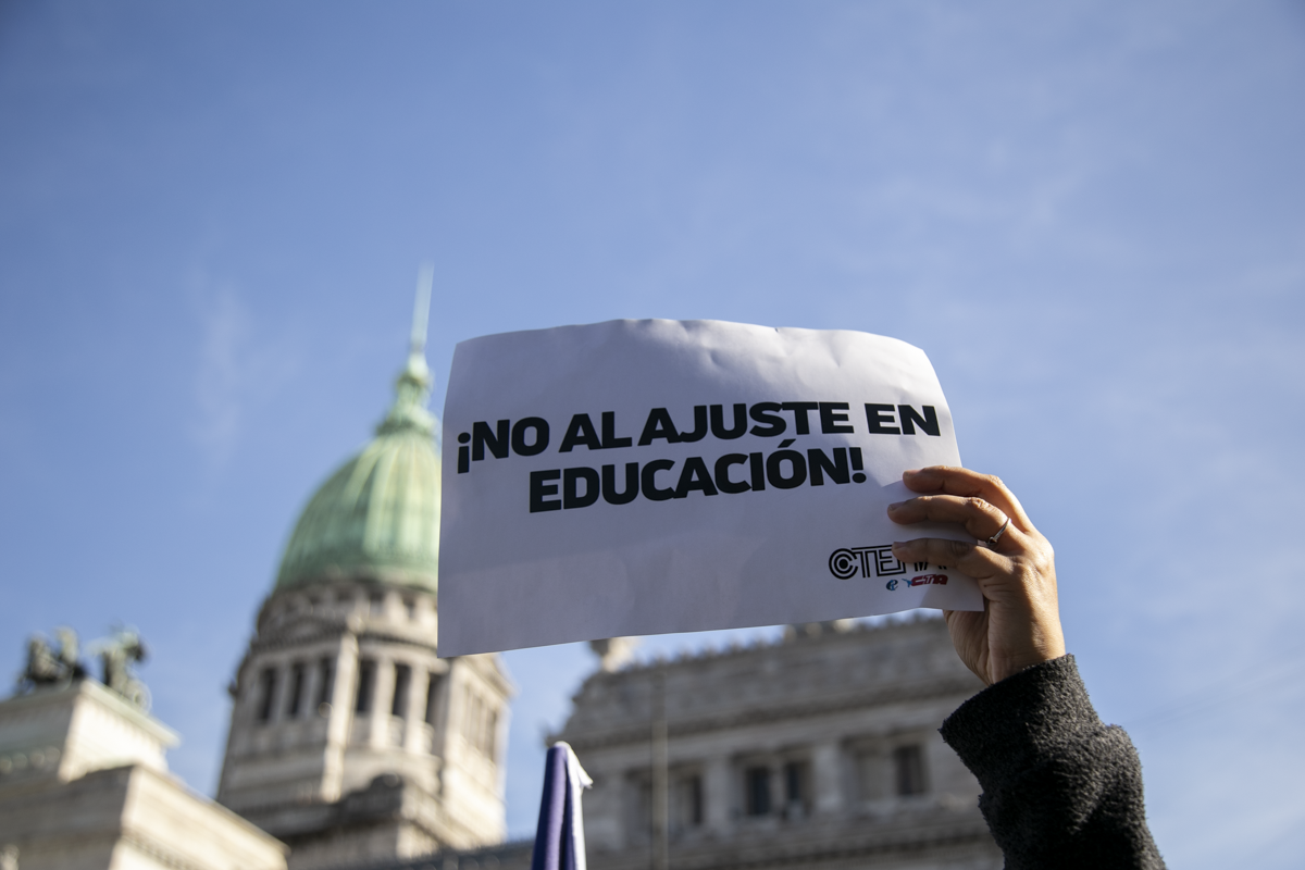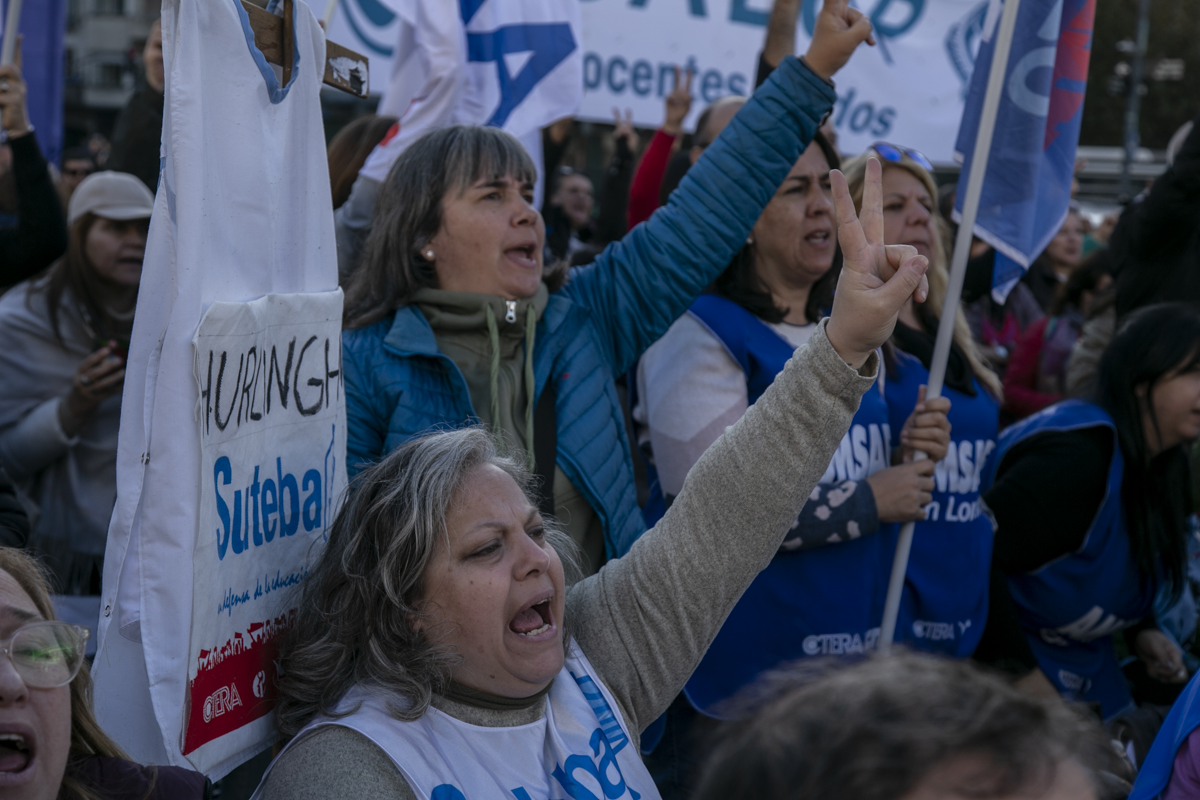 La concentración, convocada por CTERA y otros Sindicatos Docentes Nacionales de todos los Niveles y Modalidades (CONADU, SADOP, UDA, AMET, CEA), junto a los no docentes universitarios (FATUN), implica la continuidad del plan de lucha para exigir a lxs Diputadxs de la Comisión de Educación y Presupuesto la firma del dictamen para que se traten en el Congreso los proyectos de Ley de Financiamiento para Universidades Públicas y restitución del FONID.