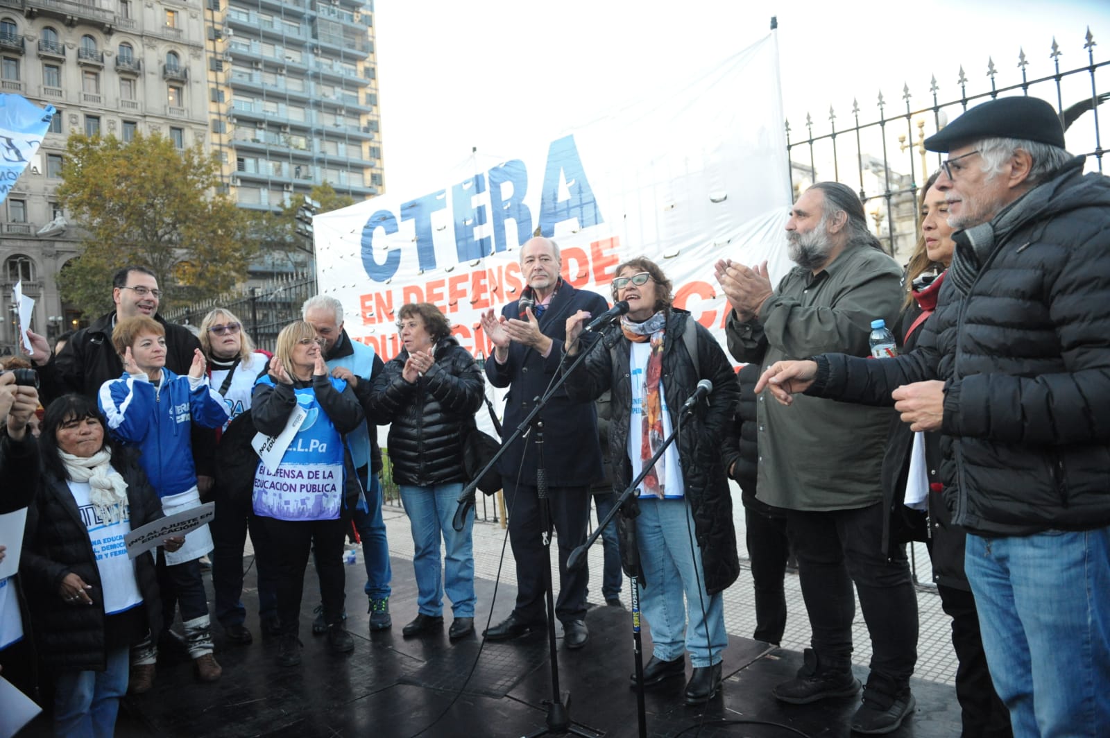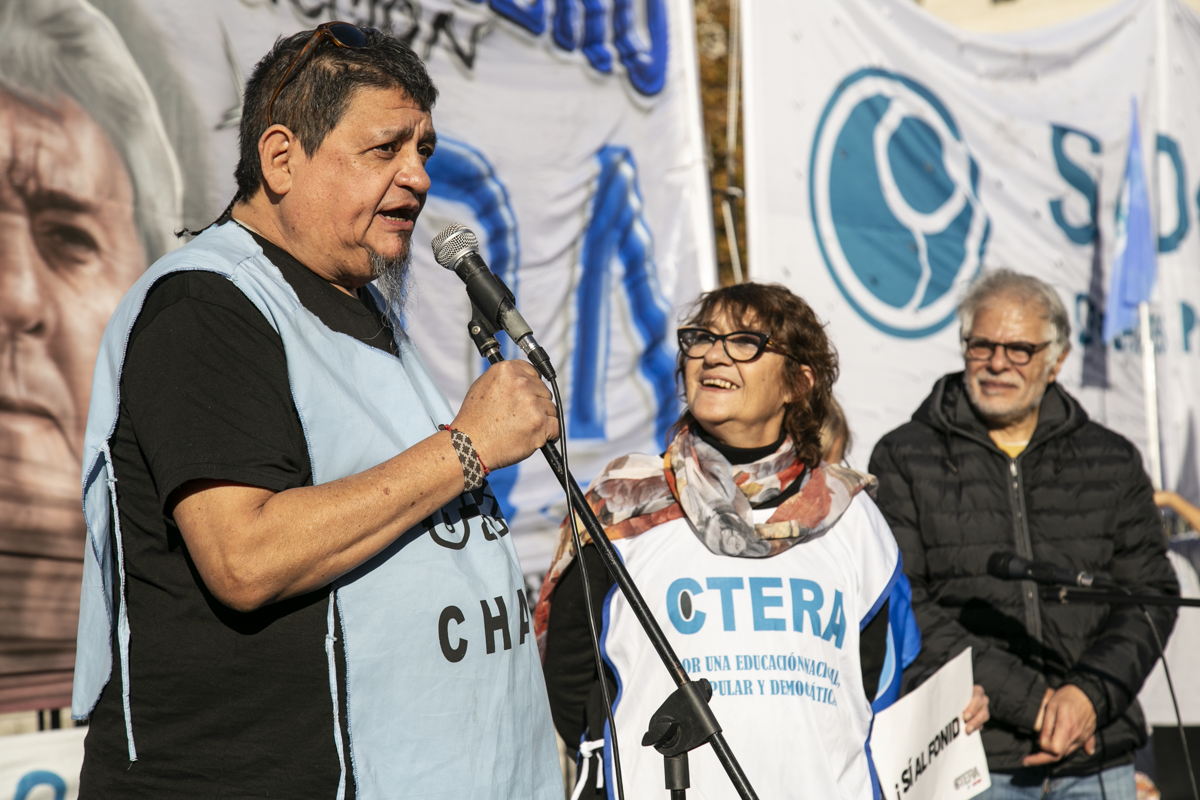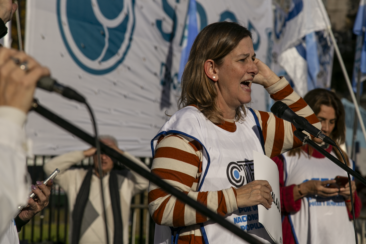 En un escenario ubicado de frente al Congreso, hicieron uso de la palabra representantes de los Sindicatos Nacionales convocantes, así como Secretarixs Generales de las entidades de base de CTERA provenientes de distintas provincias.