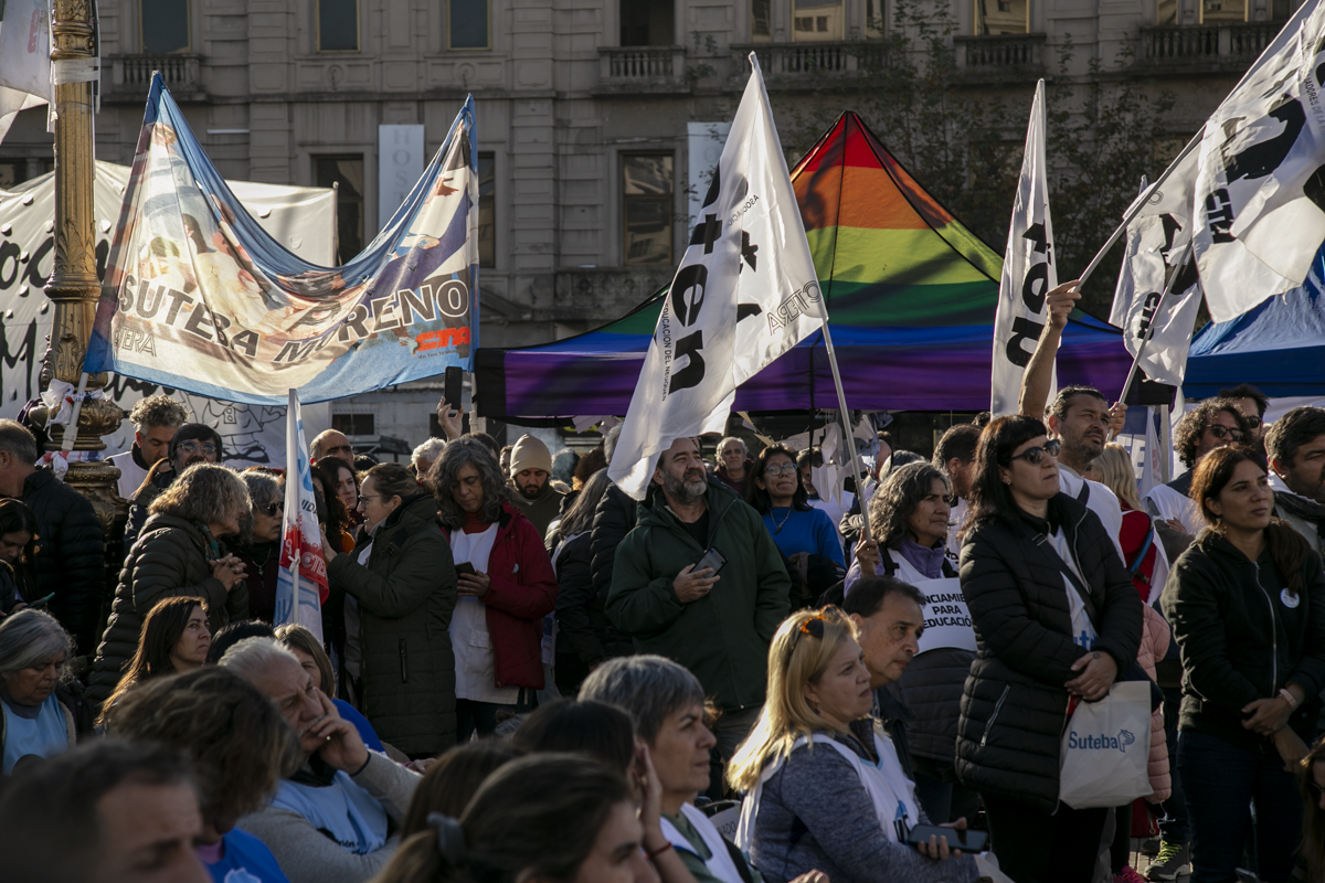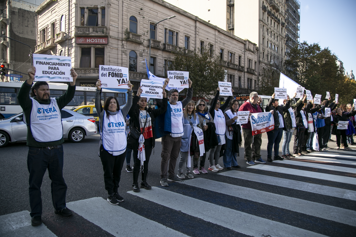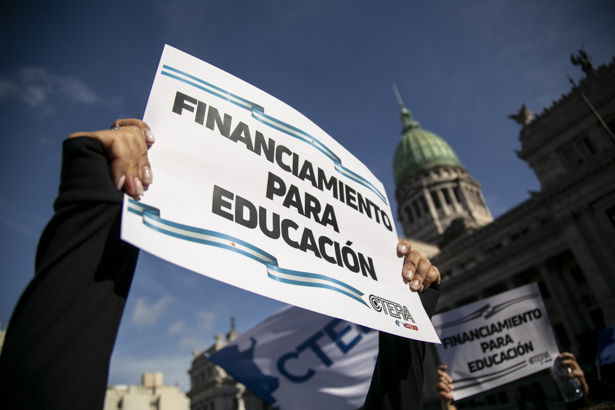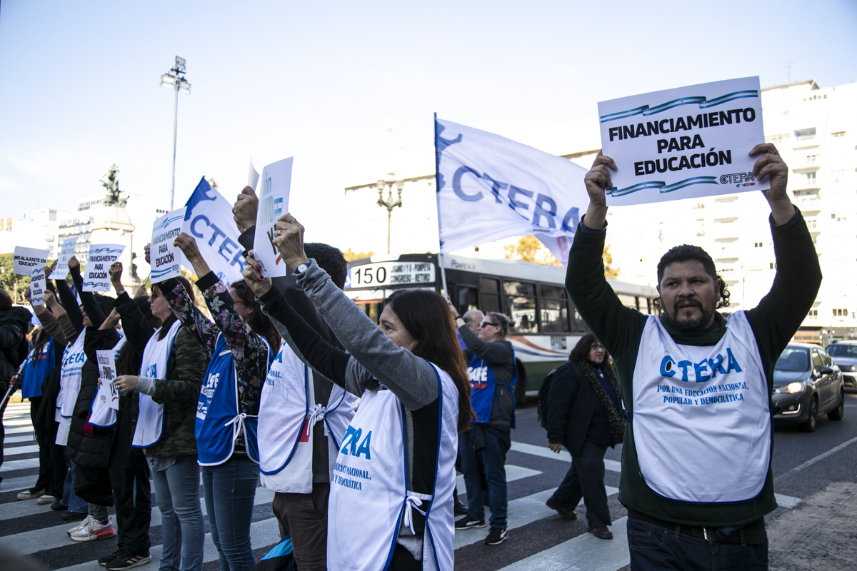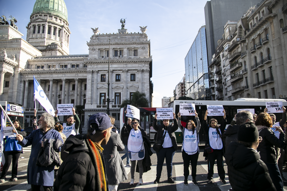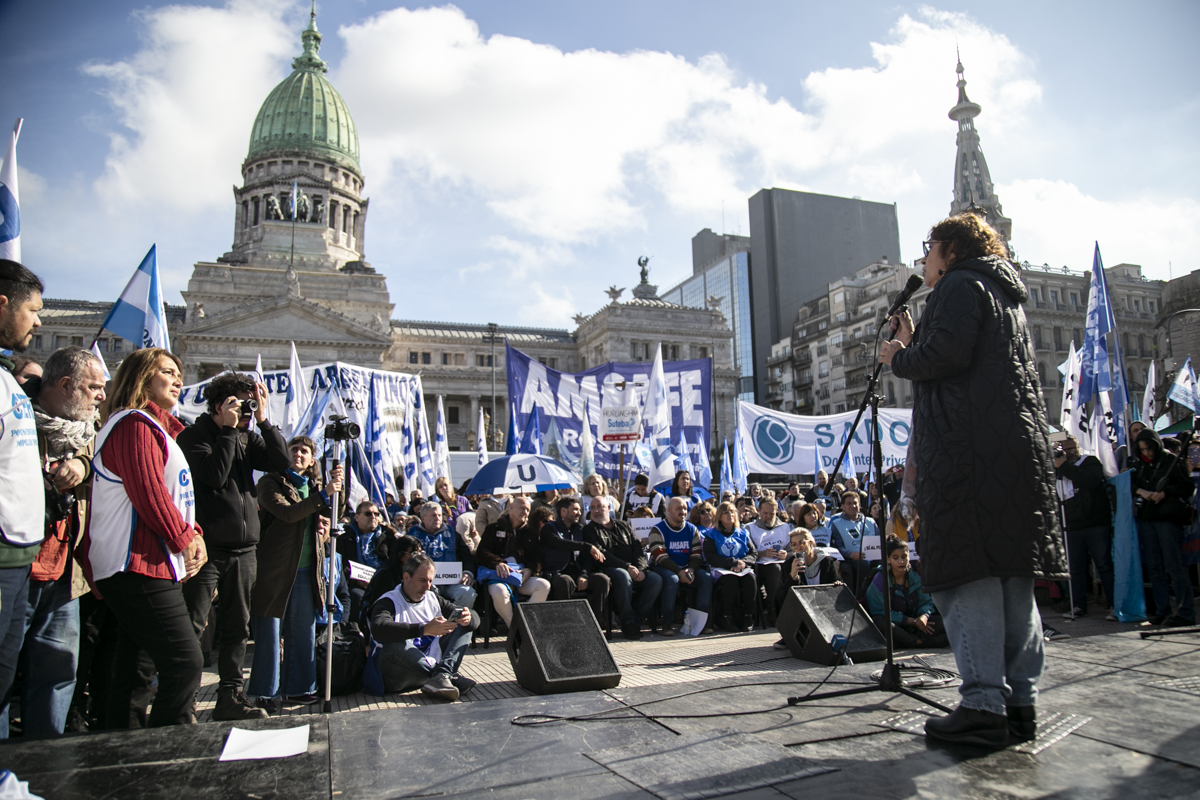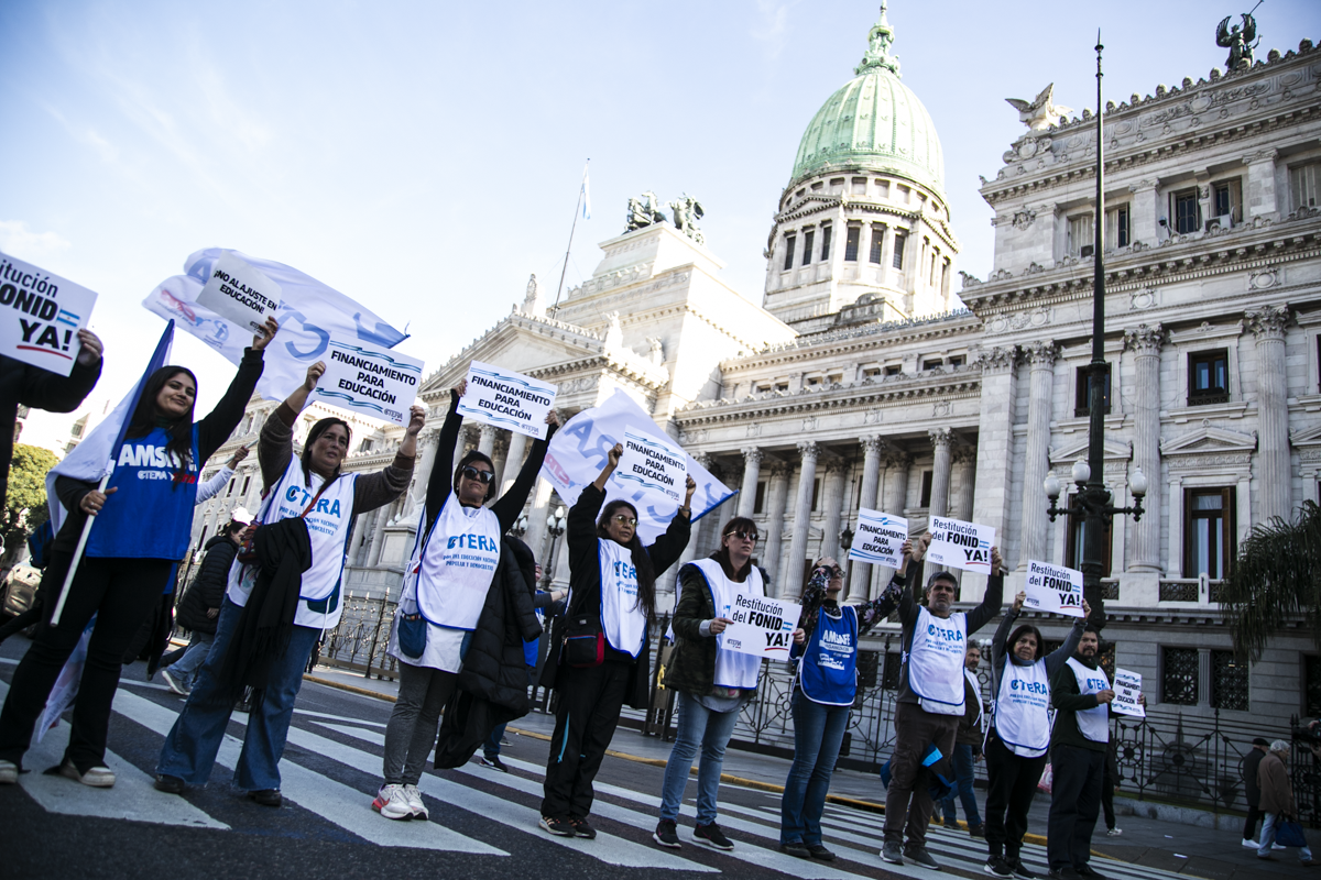 La concentración, convocada por CTERA y otros Sindicatos Docentes Nacionales de todos los Niveles y Modalidades (CONADU, SADOP, UDA, AMET, CEA), junto a los no docentes universitarios (FATUN), implica la continuidad del plan de lucha para exigir a lxs Diputadxs de la Comisión de Educación y Presupuesto la firma del dictamen para que se traten en el Congreso los proyectos de Ley de Financiamiento para Universidades Públicas y restitución del FONID.