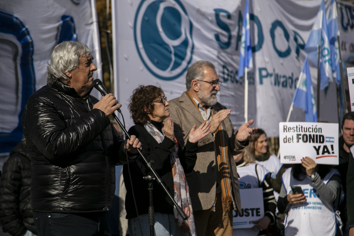 "La unidad de lxs Trabajadorxs del país es condición indispensable para construir la fuerza para derrotar estas políticas de ajuste y hambre. Creemos en la Escuela Pública y la defendemos lxs Docentes y las familias en unidad. No nos resignamos, no resignamos ni nuestra historia ni nuestras luchas, por eso más temprano que tarde vamos a conseguir la restitución del FONID y en unidad vamos a derrotar las políticas de este Gobierno. Si hoy no dictaminan, seguimos estando en las calles", concluyó Baradel.