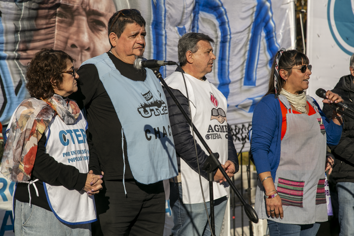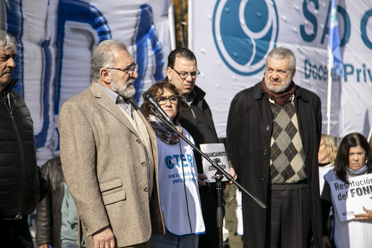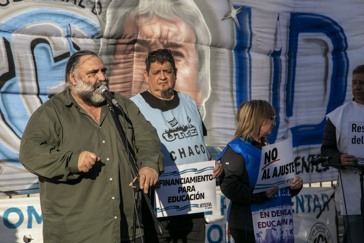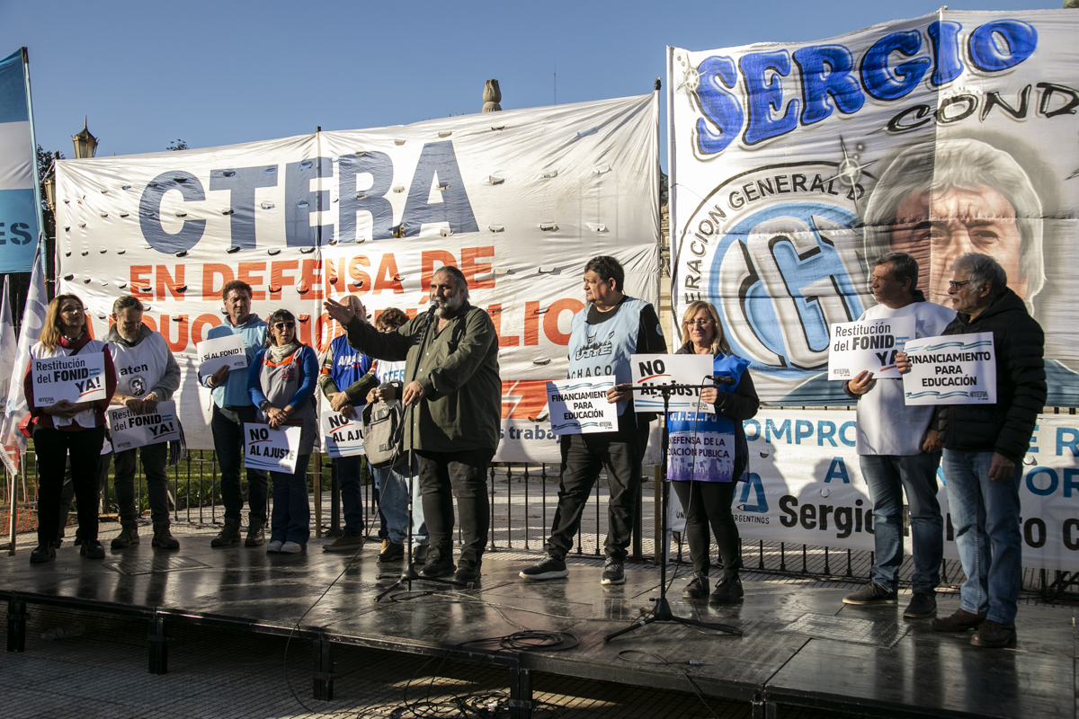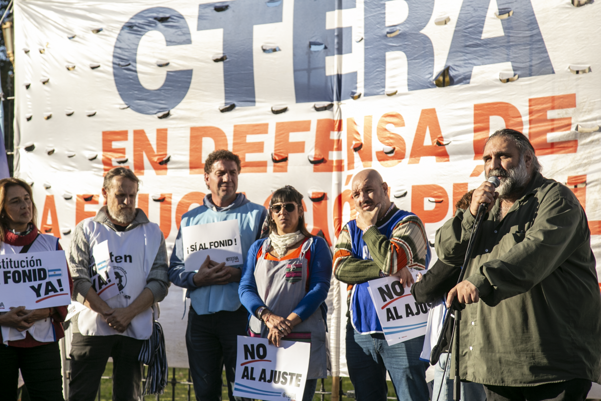Por su parte, Roberto Baradel, Secretario General del SUTEBA y Adjunto de la CTERA, expresó: "Estamos acá nuevamente para pedir la restitución de la Ley del FONID. Hubo en recorte salarial a todxs lxs Docentes del país, no convocan a Paritaria Nacional. La expresión en Misiones es una muestra de esto. Reclamamos a lxs Diputadxs el dictamen para tratar estas leyes. Los fondos para Educación son innegociables, tanto el Estado nacional como las Provincias deben invertir en el Sistema Educativo".