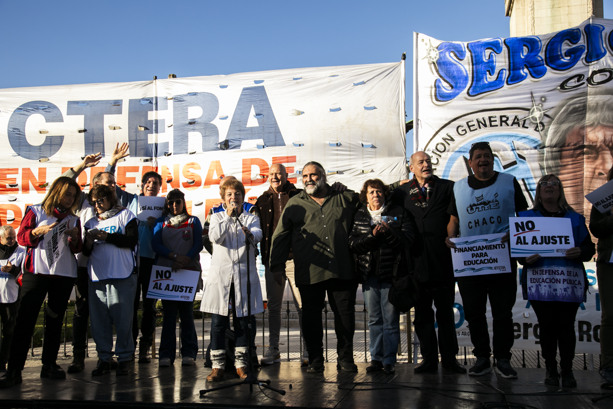 En un escenario ubicado de frente al Congreso, hicieron uso de la palabra representantes de los Sindicatos Nacionales convocantes, así como Secretarixs Generales de las entidades de base de CTERA provenientes de distintas provincias.