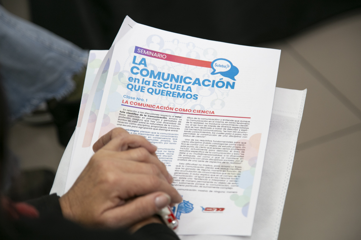 Se llevó adelante ayer en la sede central del SUTEBA la primera jornada del Seminario LA COMUNICACIÓN EN LA ESCUELA QUE QUEREMOS, donde se debatieron las principales temáticas vinculadas a la comunicación y el posicionamiento de nuestra Organización Sindical. El encuentro, organizado por la Secretaría de Comunicaciones, contó con la presencia de la periodista Nora Veiras y del docente e investigador Flavio Rapisardi.