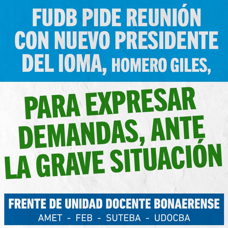 Lxs representantes del Frente de Unidad Docente Bonaerense pedimos una reunión con el nuevo Director, Homero Giles, para presentar nuestras demandas y exponer las consecuencias graves que hoy sufrimos lxs Docentes a partir de la nefasta gestión de Vidal.