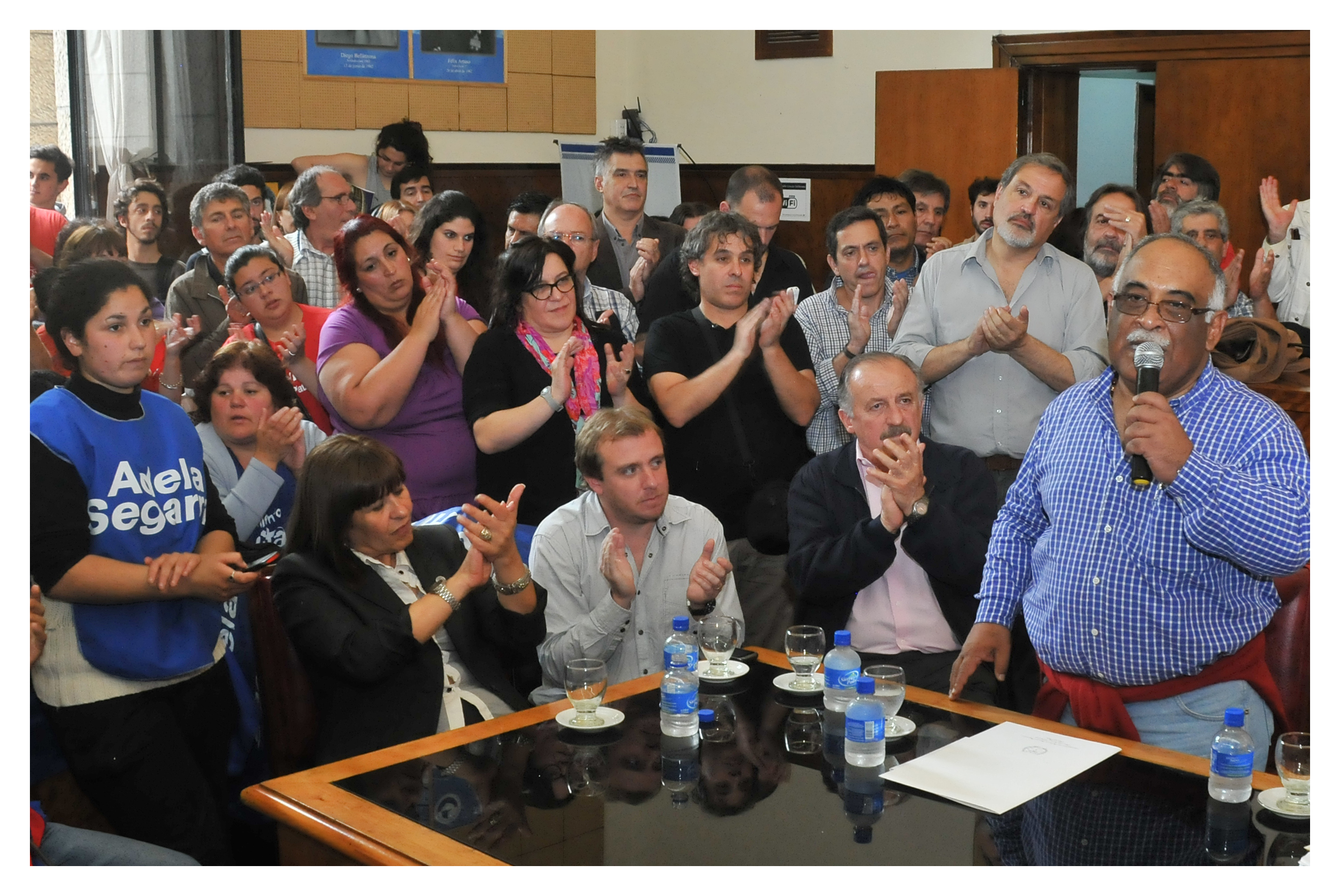 Hacia el mediodía, la comitiva de la CTA junto a otras organizaciones sociales marcharon al Concejo Deliberante de la Ciudad de Mar del Plata donde nos recibieron la Diputada Nacional Adela Segarra y el Embajador de Venezuela Carlos Eduardo Martínez Mendoza. Allí Roberto Baradel, Secretario General de la CTA Provincia de Buenos Aires, expresó : "A partir del 'No al ALCA' con la Cumbre de los Pueblos, vinieron muchas cosas buenas. Llegó la UNASUR, la CELAC y se inició el proceso de paz que se está desarrollando en Colombia con las FARC, propiciado por el comandante Hugo Chávez y Néstor Kirchner porque Estados Unidos quería la guerra para instalar sus bases militares. Todas estas cuestiones son muy importantes, hablamos de la década ganada, pero no sólo en Argentina, sino que en toda Latinoamérica".