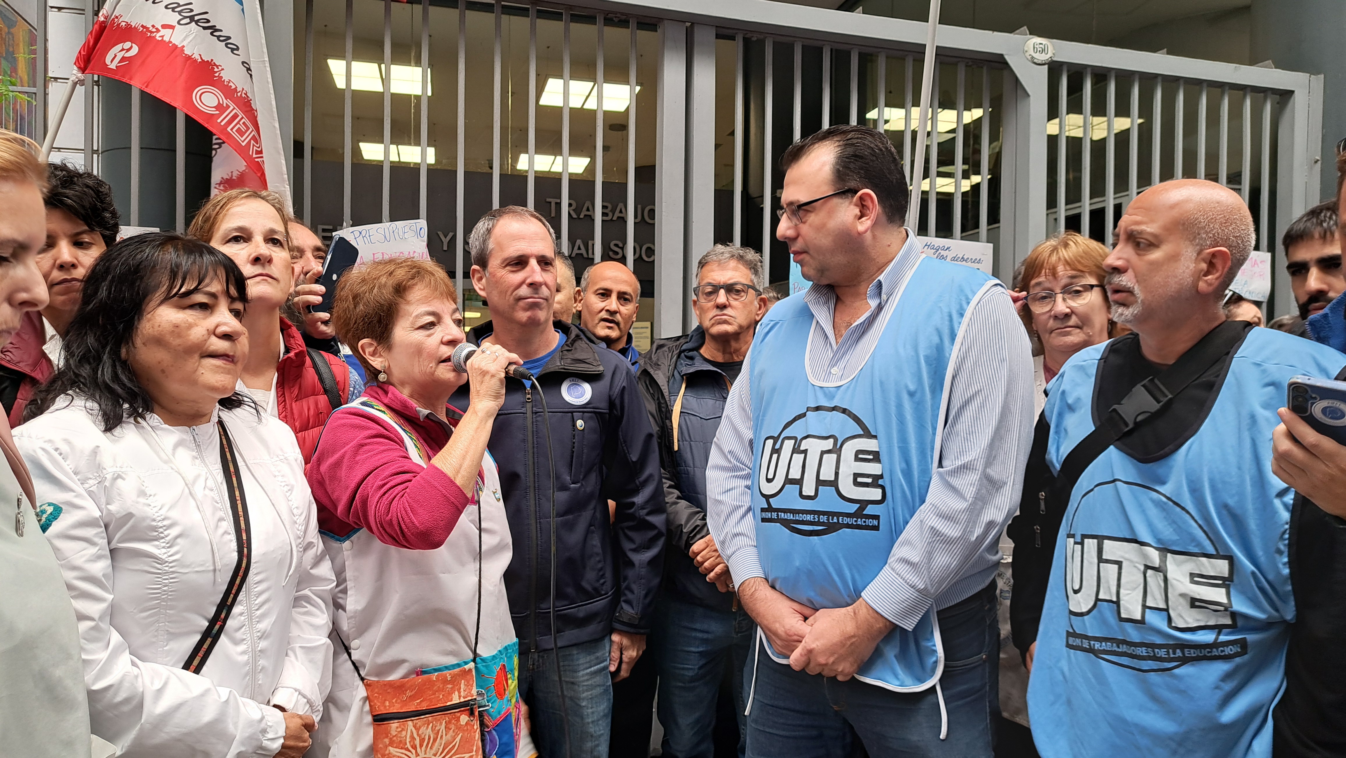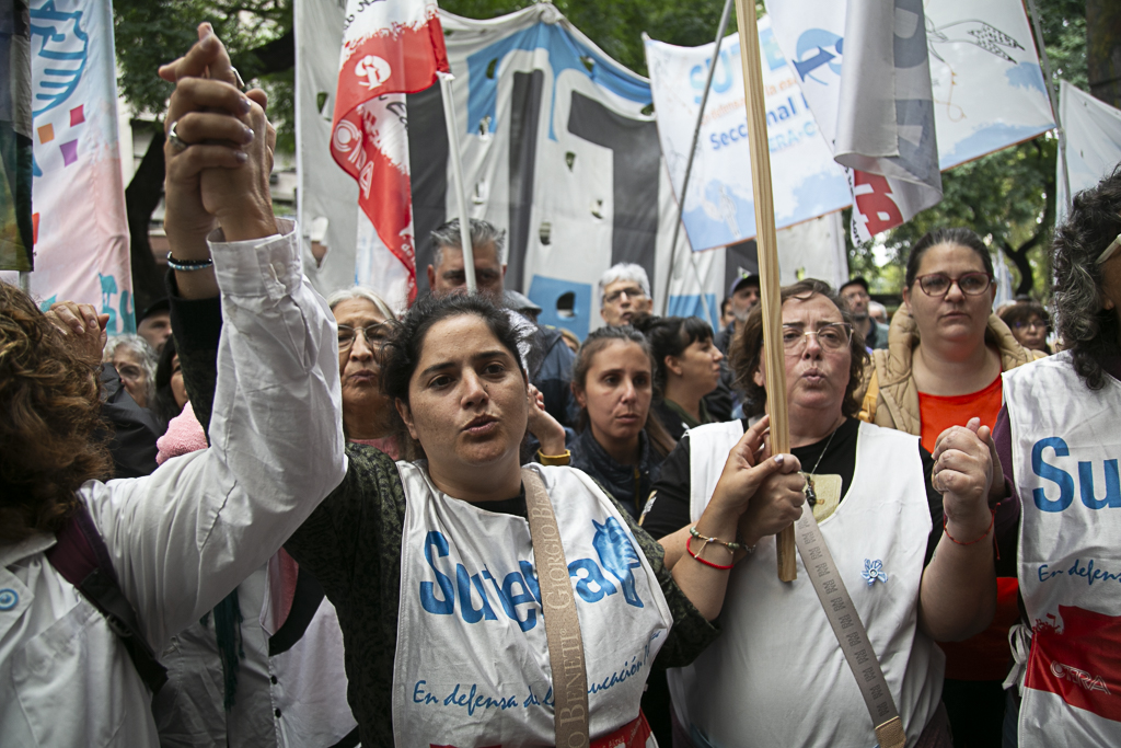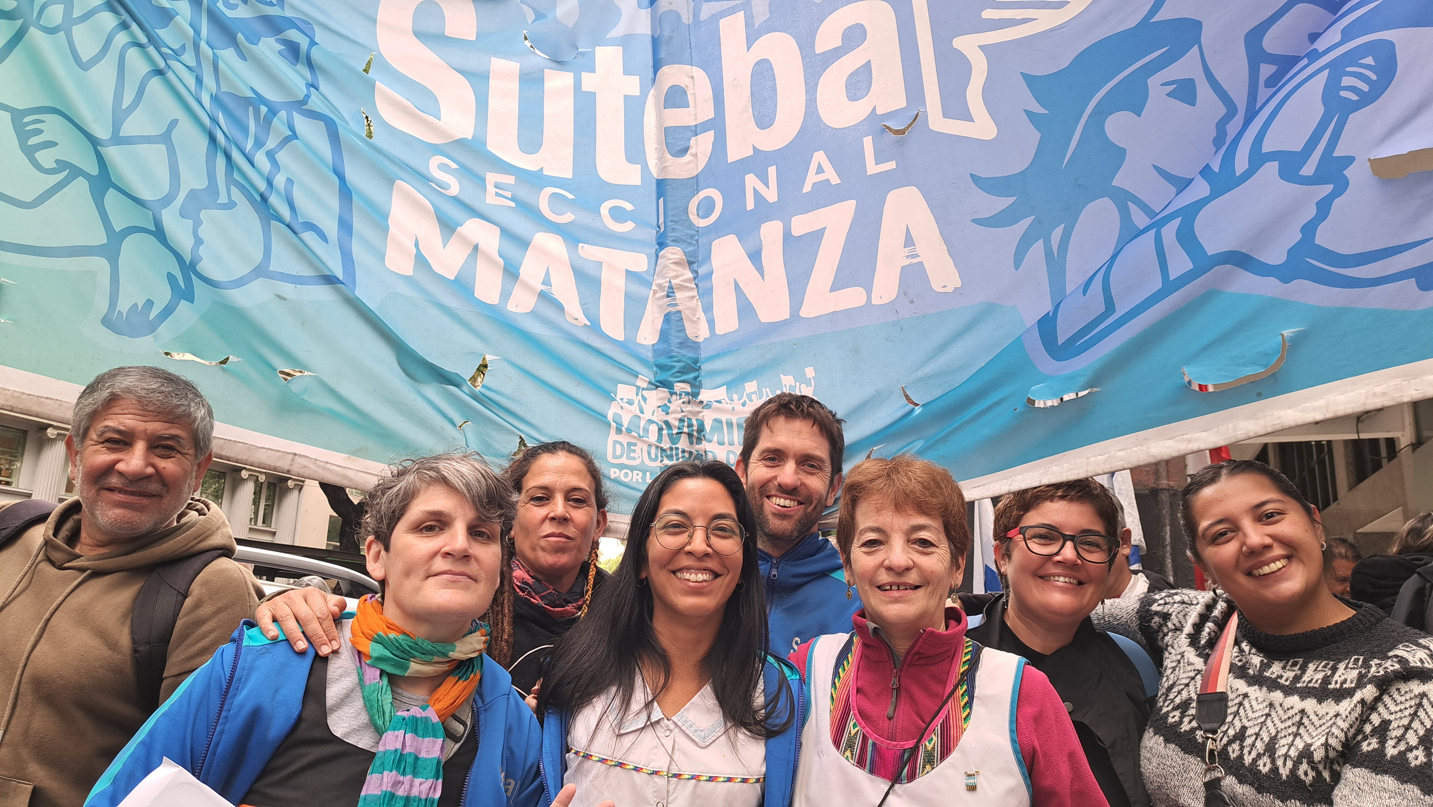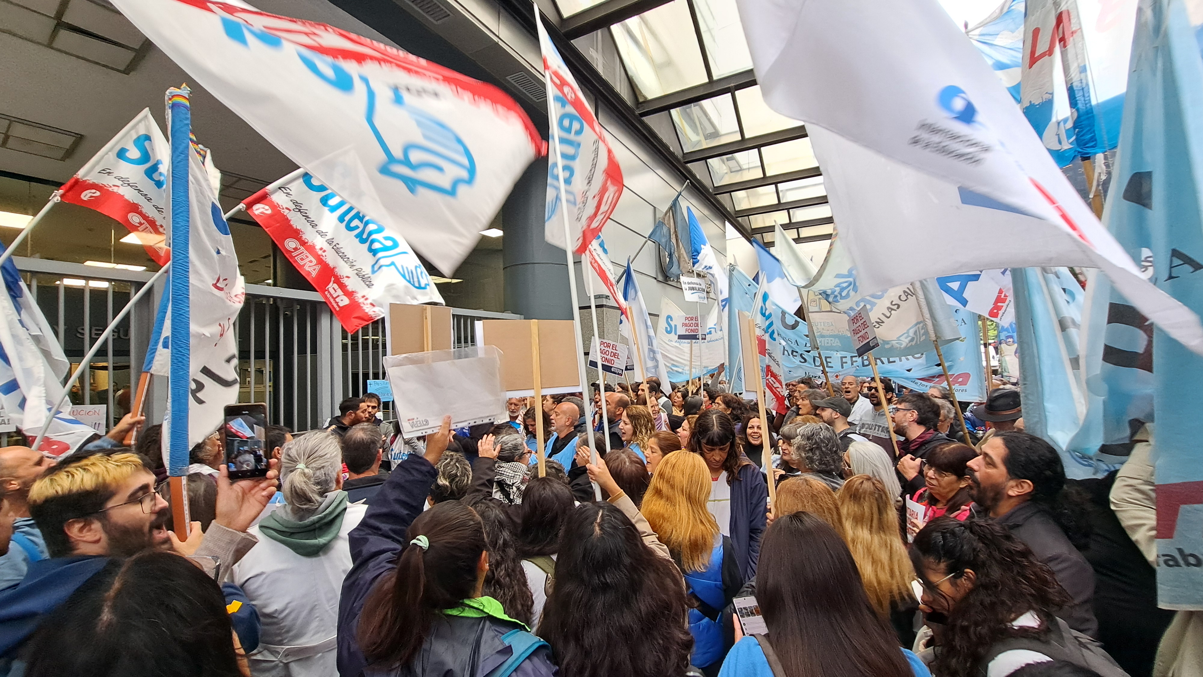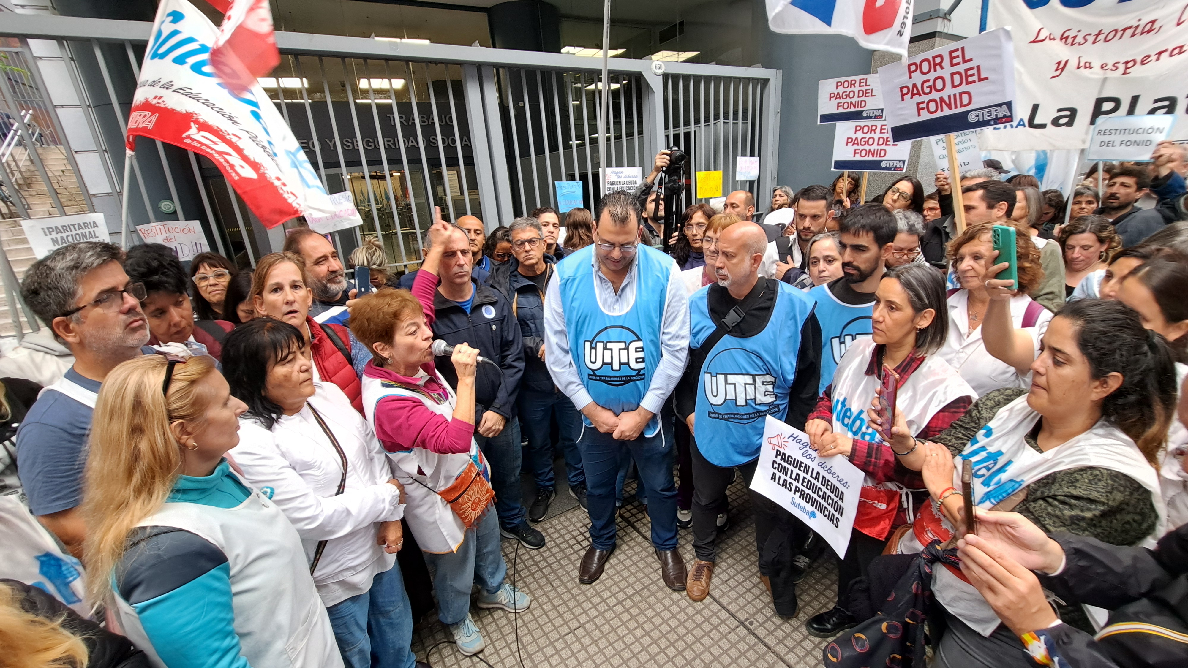 En el marco de la Paritaria Nacional Docente, de la que participó la CTERA, delegaciones del SUTEBA se concentraron desde las 10:30 frente a la Secretaría de Trabajo, en CABA, con carteles que exigían "Basta de corrupción – Plata para Educación" y "Hagan los deberes: paguen la deuda con la Educación a las Provincias".
