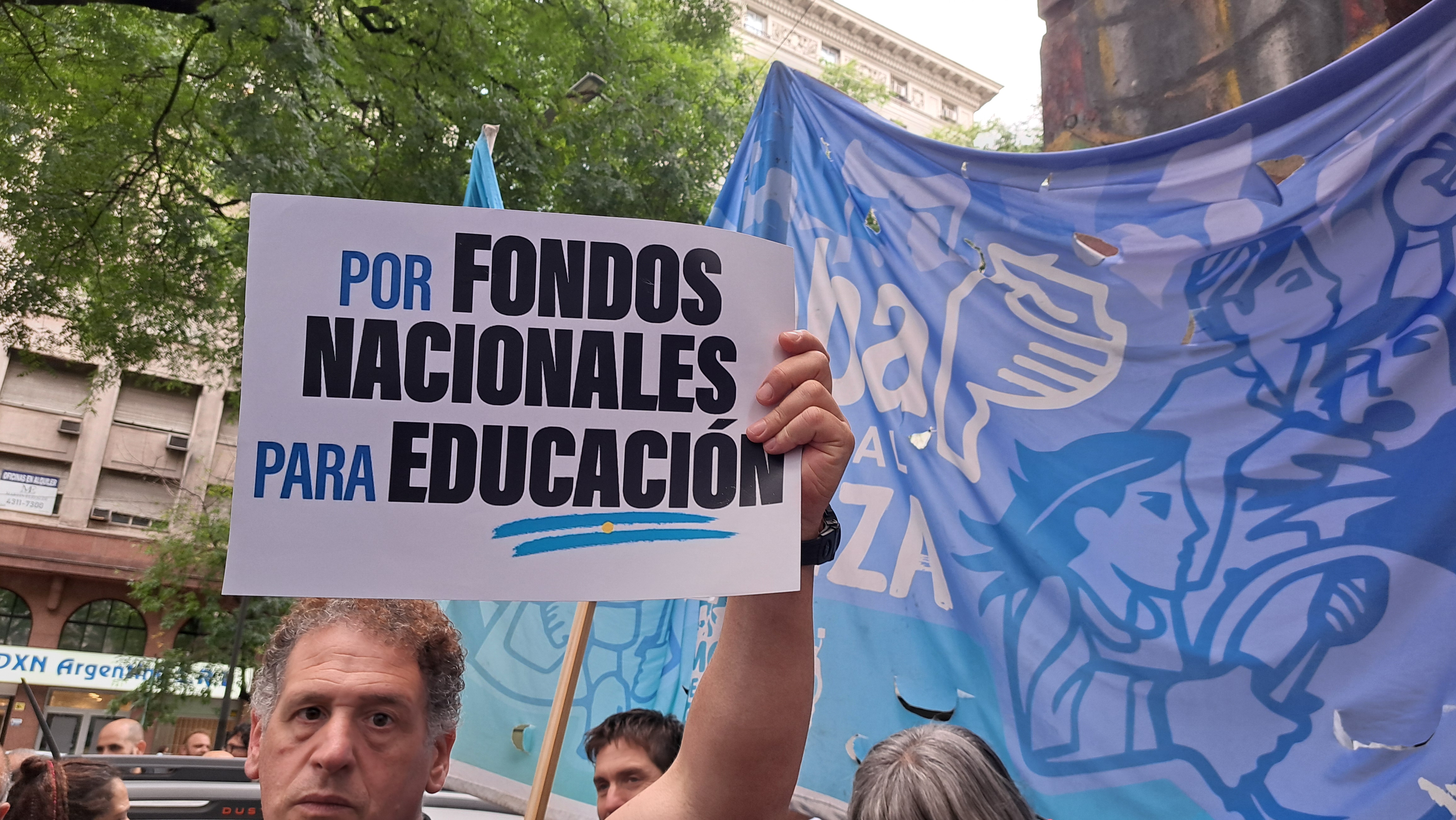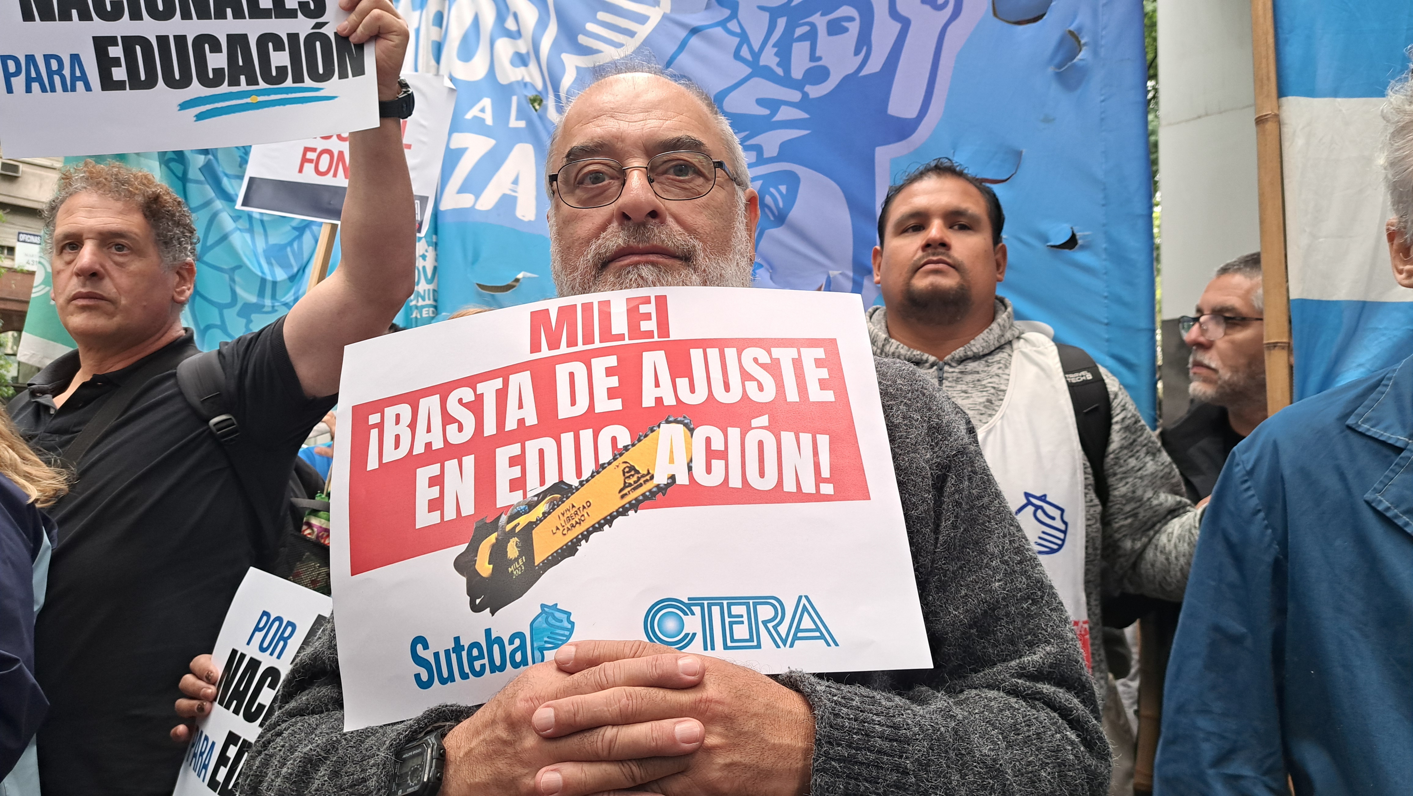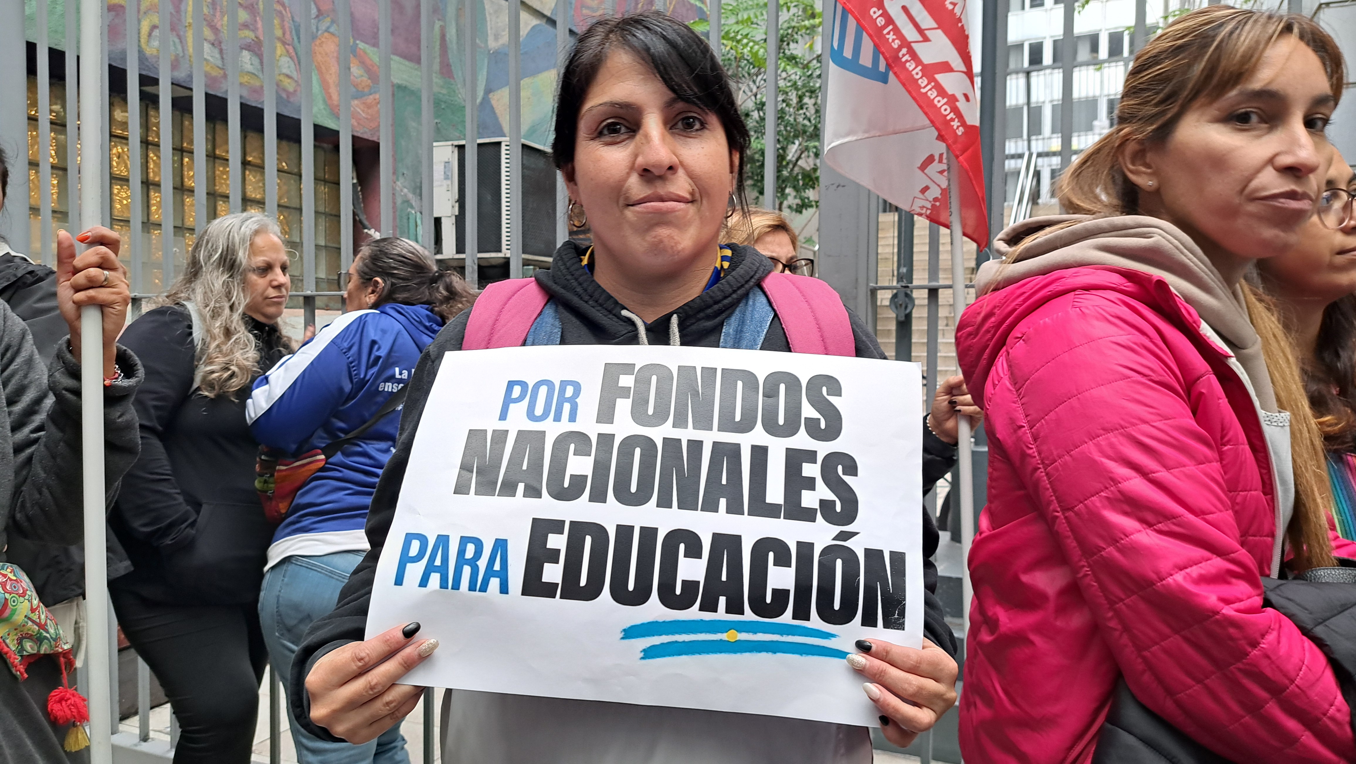 "Vinimos a exigirle al Gobierno de Milei, al Gobierno Nacional, a Torrendell, que está ahí arriba dándonos la espalda, porque nunca nos dio la cara a la docencia del país. No estamos solo por un piso salarial justo, sino para exigir que también nos devuelvan la plata que nos robaron desde que asumieron, que es el Fondo Nacional de Incentivo Docente. Algunxs que están ahí arriba ni se enteraron qué es el FONID, lo parimos nosotrxs en la Carpa Blanca de la dignidad".