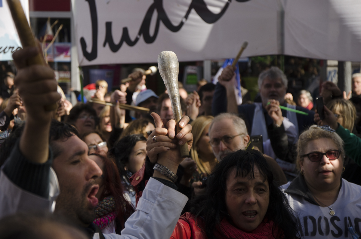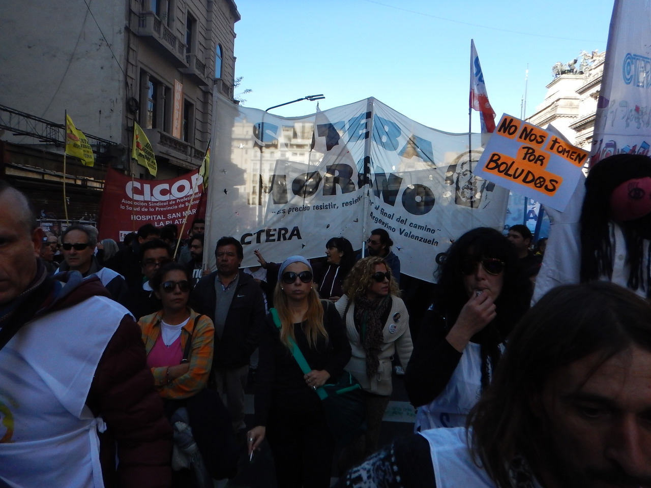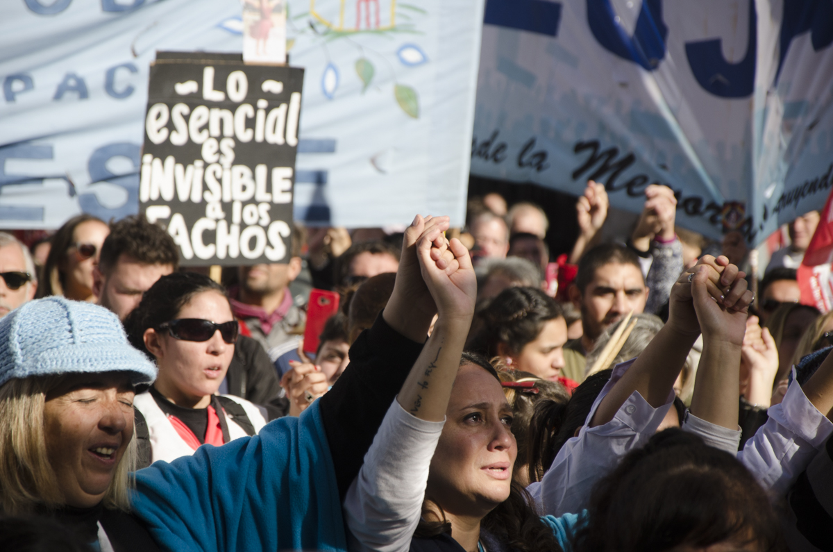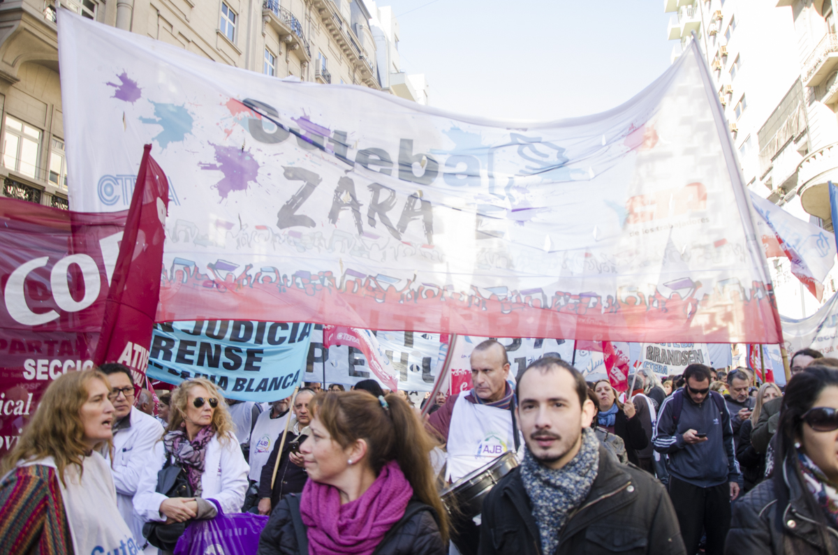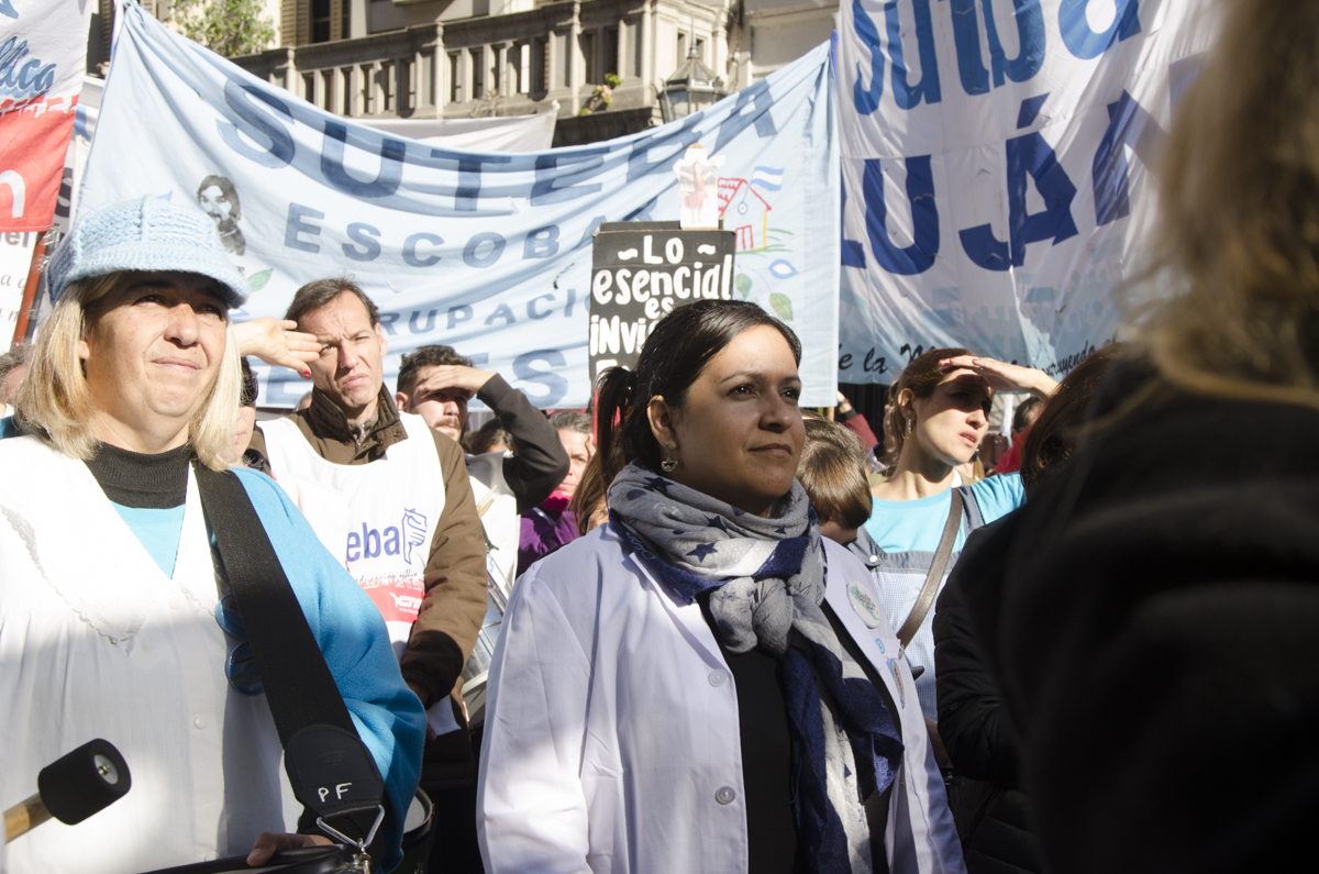 María Laura Torre, Secretaria General Adjunta electa, sostuvo: "Nos movilizamos, en el marco de un paro provincial muy fuerte, en respuesta a la última mesa paritaria donde el Gobierno Provincial ratificó una política de ajuste sobre nuestros salarios. Estamos en la calle para mostrarle a Vidal que estamos de pie y que vamos a seguir peleando porque estamos cobrando un salario de apenas $9801, que está congelado hace 11 meses y con ese dinero no podemos vivir. Necesitamos un aumento salarial digno y la devolución de los descuentos de días de paro".