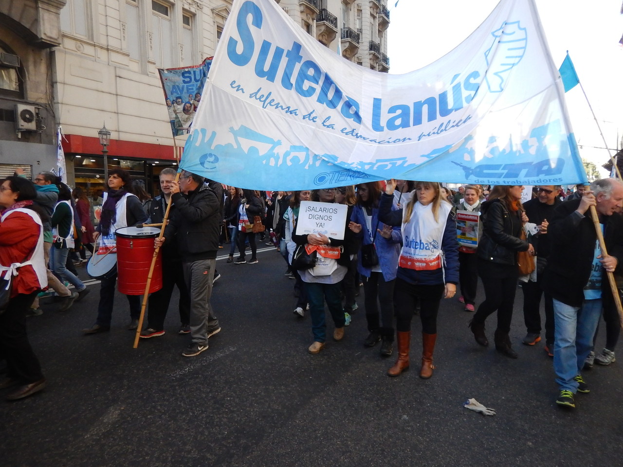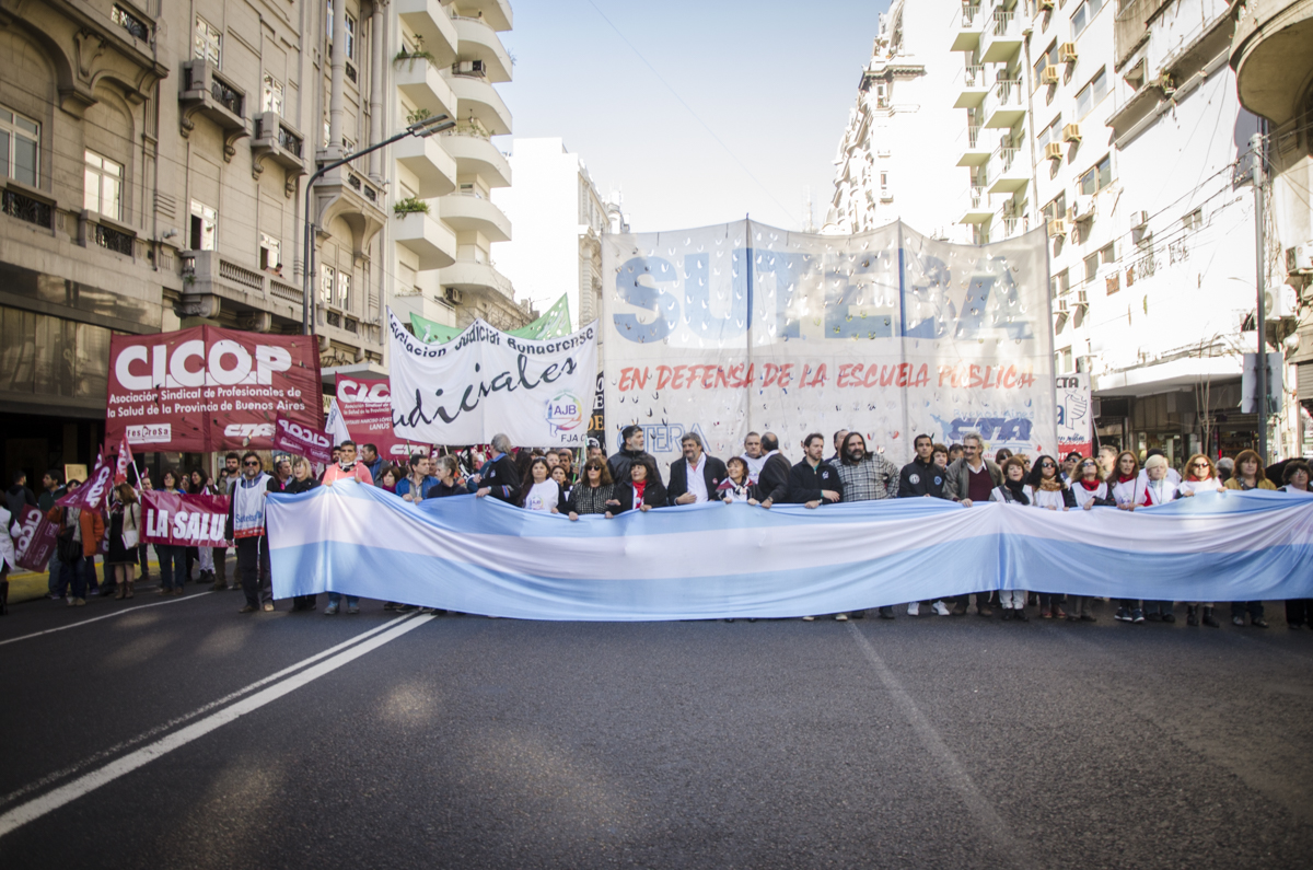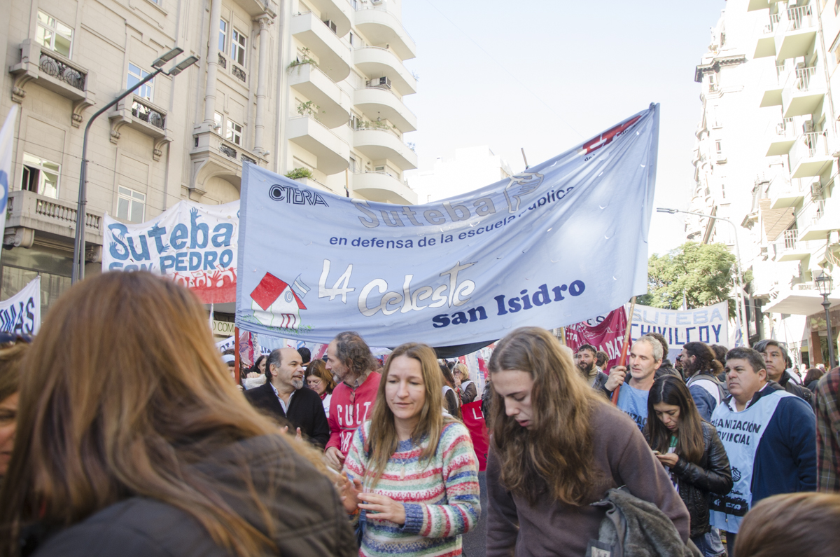 Los Trabajadores de la Educación, adhiriendo de manera contundente al Paro Docente, nuevamente salieron a las calles dando una clara respuesta al Gobierno de María Eugenia Vidal. Luego de otra oferta salarial insuficiente, SUTEBA se movilizó hacia la Casa de la Provincia de Buenos Aires para exigir la pronta devolución de los descuentos ilegales y un aumento salarial digna para que no haya ningún docente por debajo de la línea de la pobreza.