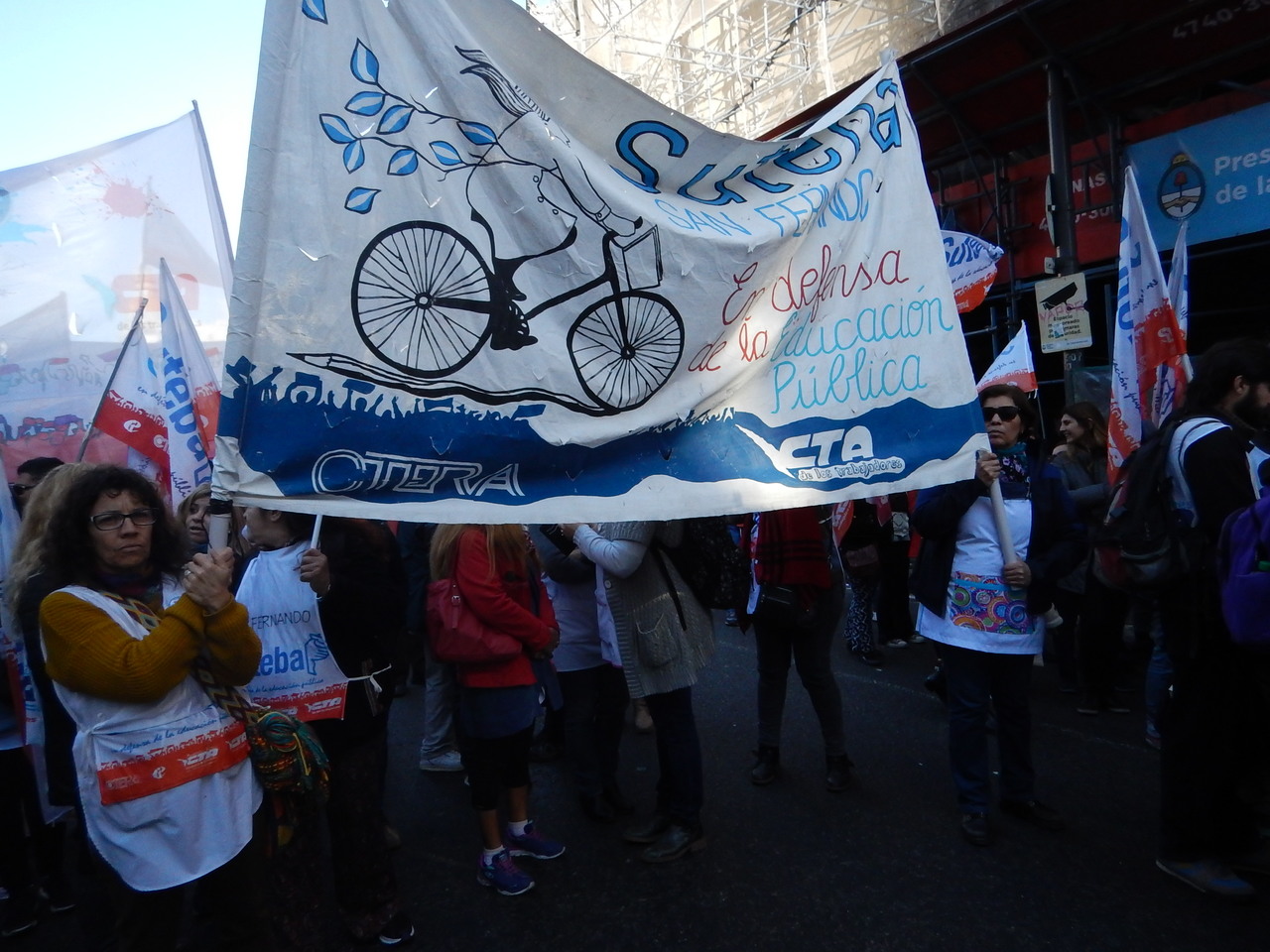 A su vez, Silvia Almazán, Secretaria General Adjunta electa, declaró: "Pese al intento de dividir nuestra lucha y con las amenazas constantes del Gobierno, los Docentes reclamamos por un salario digno y justo, además de más presupuesto para la Educación para que mejoren las condiciones edilicias, para que haya comedores escolares con alimentación saludable y para que se nombren todos los cargos que faltan. Por eso nuestra lucha va a seguir, vamos a defender nuestros derechos y la Escuela Pública".
