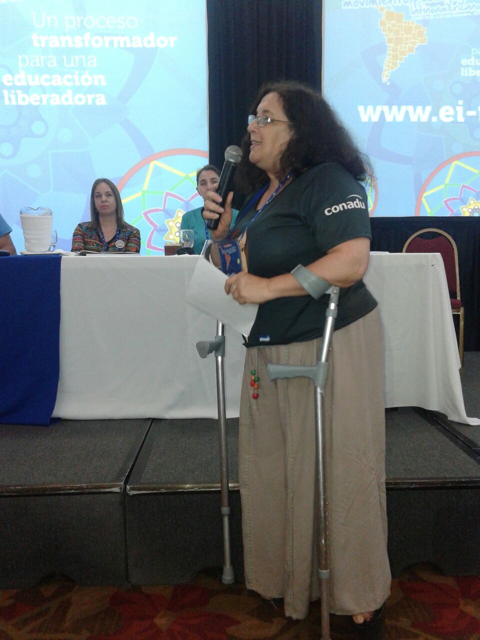 Luego se produjeron intervenciones de los delegados de diferentes países, entre ellos la compañera Silvia Almazán, Secretaria de Educación y Cultura del SUTEBA, quien se refirió al documento del Banco Mundial "Profesores Excelentes" de 2014, que plantea un reconocimiento a los avances educativos en Latinoamérica en esta década en alfabetización y escolarización, pero indica un desfasaje respecto de los "países desarrollados". En ese trabajo se le atribuye la responsabilidad en esa diferencia a las organizaciones sindicales, por ser reactivos a los cambios que propone esa institución y también a los Trabajadores de la Educación por una supuesta baja cualificación académica. Almazán señaló que "si nos consideran reactivos a las políticas del BM, lo somos, si nos dicen reactivos a las políticas de privatización, lo somos, si nos plantean reactivos las políticas neoliberales, los somos"