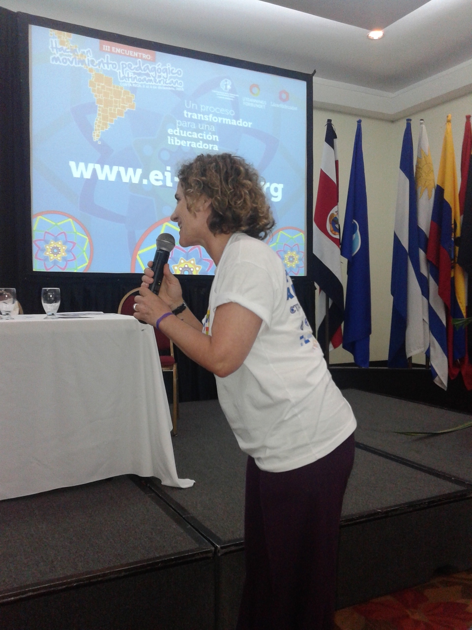 Luego se produjeron intervenciones de los delegados de diferentes países, entre ellos la compañera Silvia Almazán, Secretaria de Educación y Cultura del SUTEBA, quien se refirió al documento del Banco Mundial "Profesores Excelentes" de 2014, que plantea un reconocimiento a los avances educativos en Latinoamérica en esta década en alfabetización y escolarización, pero indica un desfasaje respecto de los "países desarrollados". En ese trabajo se le atribuye la responsabilidad en esa diferencia a las organizaciones sindicales, por ser reactivos a los cambios que propone esa institución y también a los Trabajadores de la Educación por una supuesta baja cualificación académica. Almazán señaló que "si nos consideran reactivos a las políticas del BM, lo somos, si nos dicen reactivos a las políticas de privatización, lo somos, si nos plantean reactivos las políticas neoliberales, los somos"