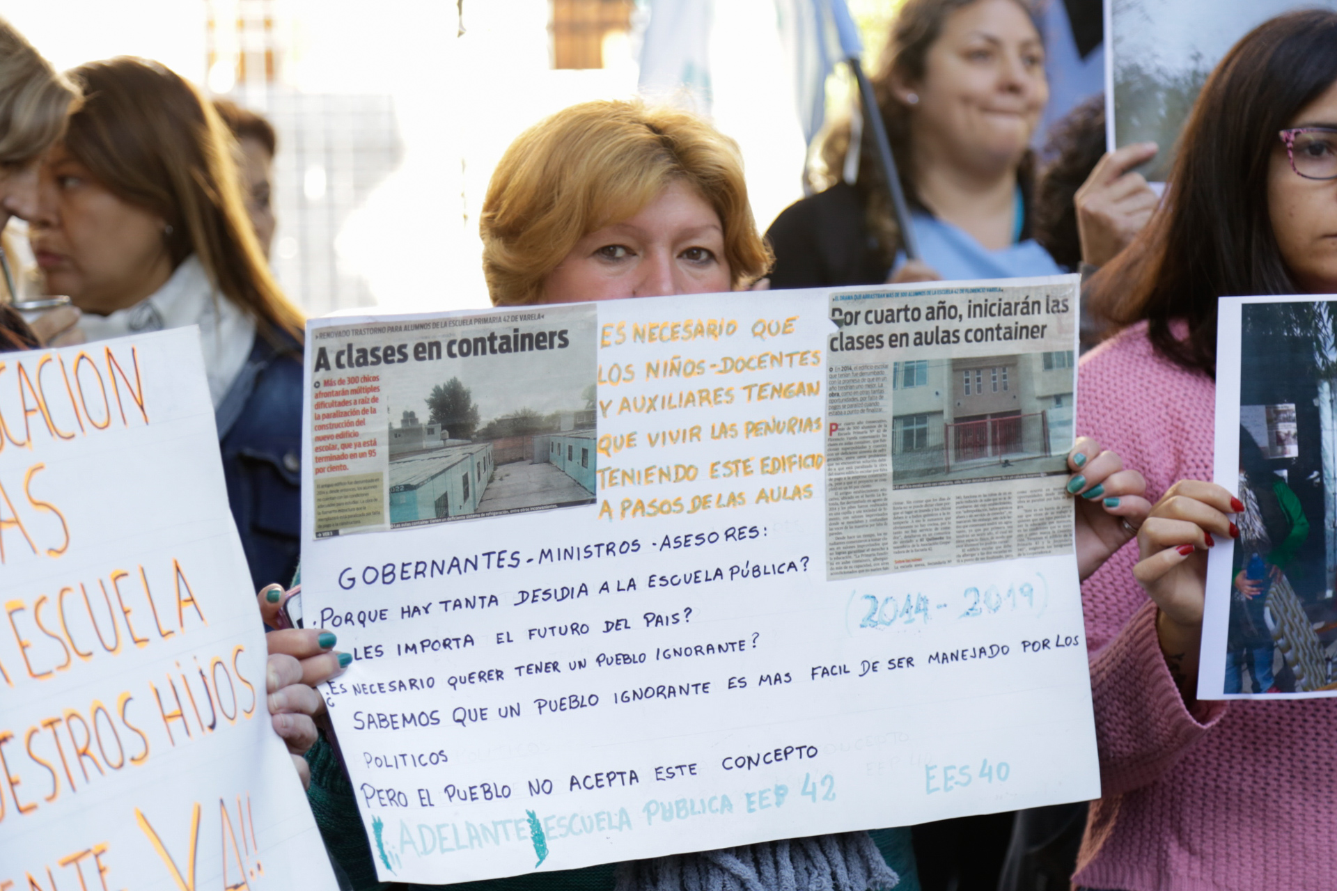 Silvia Almazán, Secretaria General Adjunta del SUTEBA, expresó: "Necesitamos un plan de emergencia edilicia para que ningún Docente, Auxiliar o Estudiante vuelva a estar en riesgo en la Provincia. Demandamos también el desarrollo de un plan integral de mantenimiento preventivo y correctivo. Creemos que esto tiene que ser una política sistemática de las autoridades, porque los problemas que no se resolvieron el año pasado, hoy los encontramos agravados. No sólo problemáticas edilicias, sino también problemáticas en relación al mobiliario".