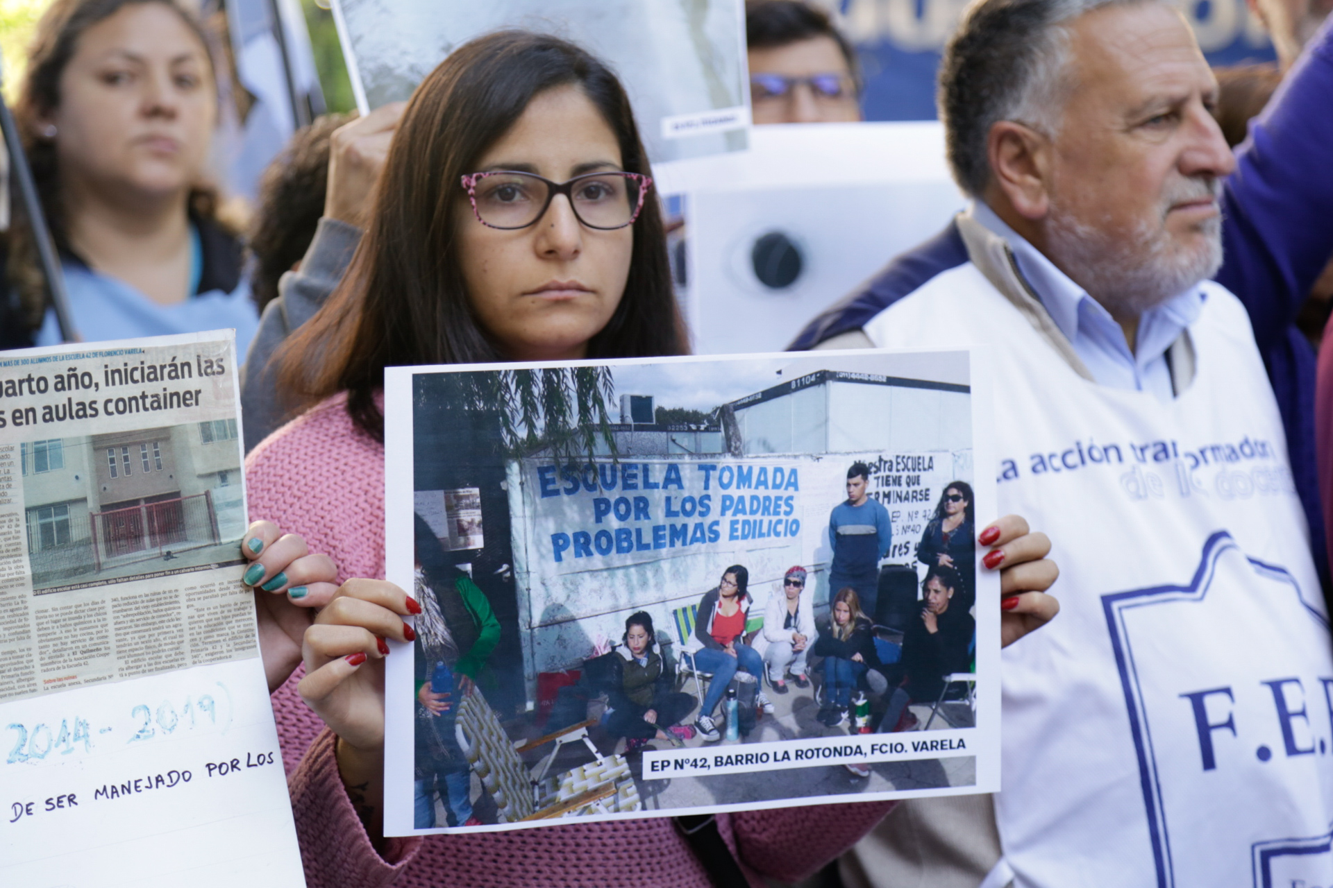 Silvia Almazán, Secretaria General Adjunta del SUTEBA, expresó: "Necesitamos un plan de emergencia edilicia para que ningún Docente, Auxiliar o Estudiante vuelva a estar en riesgo en la Provincia. Demandamos también el desarrollo de un plan integral de mantenimiento preventivo y correctivo. Creemos que esto tiene que ser una política sistemática de las autoridades, porque los problemas que no se resolvieron el año pasado, hoy los encontramos agravados. No sólo problemáticas edilicias, sino también problemáticas en relación al mobiliario".