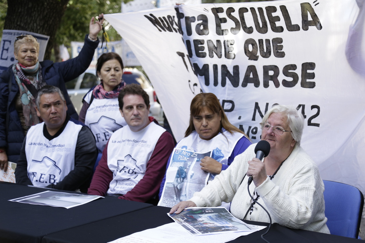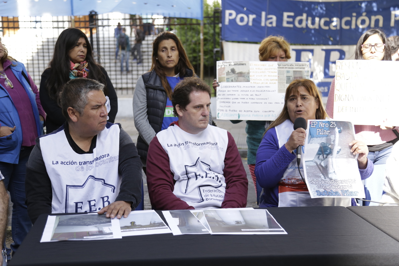 Con el reclamo de Justicia por Sandra y Rubén y la presencia de Docentes de numerosos distritos y de representantes de cada una de las Organizaciones Sindicales del FUDB, lxs Consejerxs Generales Graciela Veneciano (FEB), Graciela Salvador (FEB) y Marcelo Zarlenga (SUTEBA), al mismo tiempo que se desarrollaba una reunión de la Mesa Técnica de Infraestructura en la DGCyE, se dieron a conocer las graves problemáticas edilicias que hay en las Escuelas en todos los Niveles y Modalidades de enseñanza, haciendo responsable al Gobierno Provincial de no resolver estas urgencias.