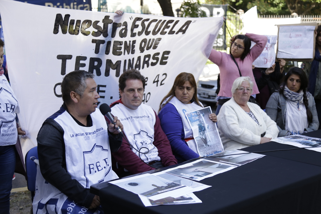 El miércoles 20 de marzo, el Frente de Unidad Docente Bonaerense realizó una conferencia de prensa para denunciar la grave situación de infraestructura que atraviesan las Escuelas de la Provincia y que no es resuelta por el Gobierno de María Eugenia Vidal, lo que deja a los establecimientos en un alarmante estado de abandono y de riesgo para Estudiantes y Trabajadorxs de la Educación. La desidia es la respuesta de este Gobierno que no es capaz de llevar adelante sus funciones.