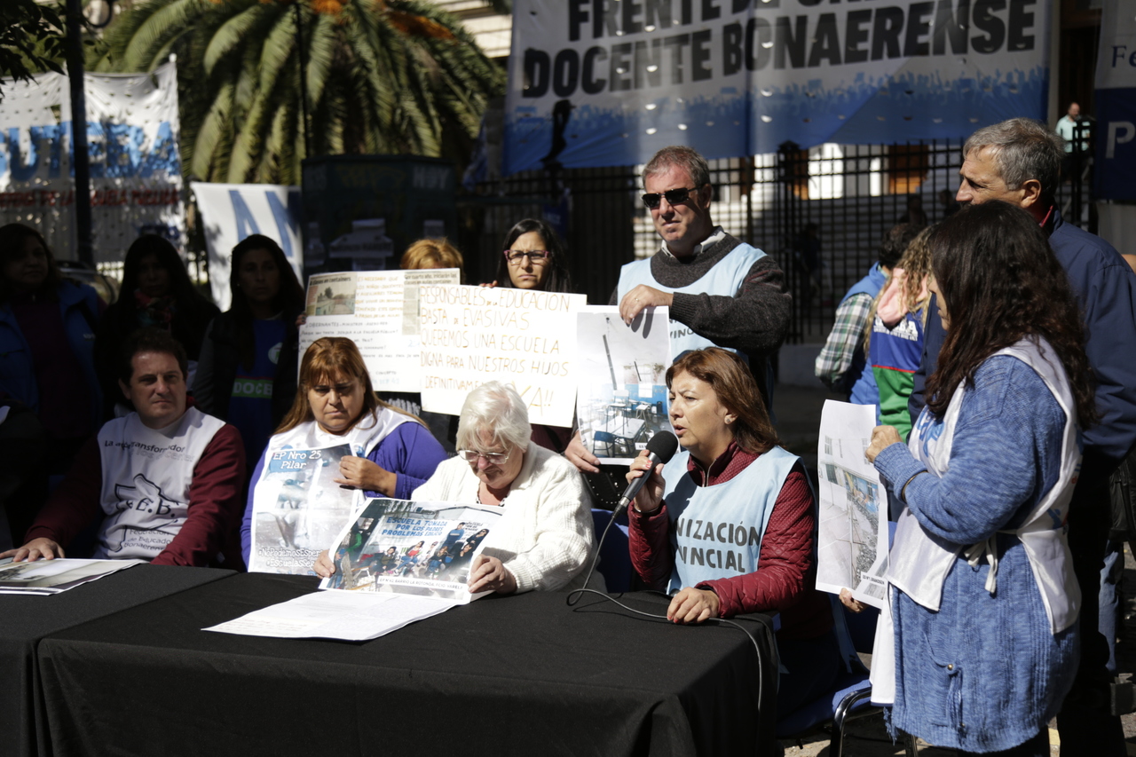 Tomaron la palabra lxs dirigentes de los gremios que componen el FUDB (AMET, FEB, SADOP, SUTEBA y UDOCBA), dirigentes y representantes que dieron a conocer la situación que atraviesan los distritos de Florencio Varela, Quilmes, La Plata, Mercedes, Pilar, Brandsen, Ensenada y General Sarmiento respecto a problemáticas de infraestructura, dando un marco de lo que se vive a nivel general en toda la Provincia.