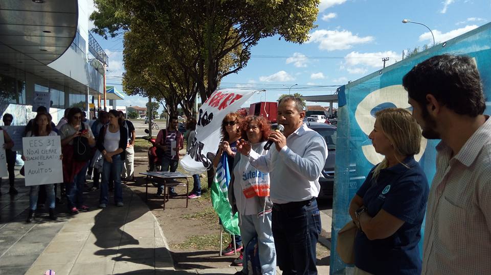 El Secretario General del SUTEBA General Pueyrredón, Gustavo Santos Ibáñez, sostuvo: "Estamos acá no sólo para defender el puesto de trabajo de nuestros compañerxs Docentes. Estamos acá para defender a la Educación Pública y el derecho de estxs jóvenes a estudiar contra el brutal ajuste que quiere imponer este Gobierno".