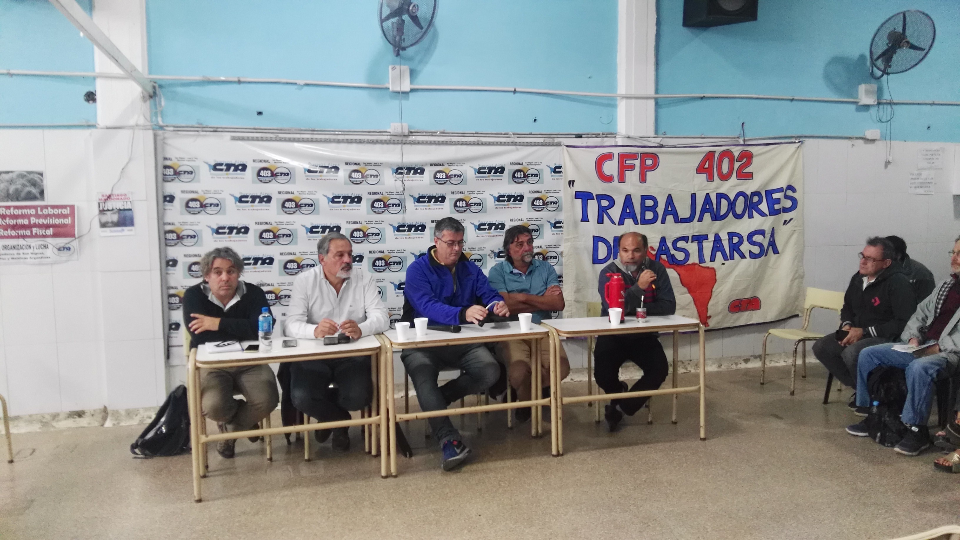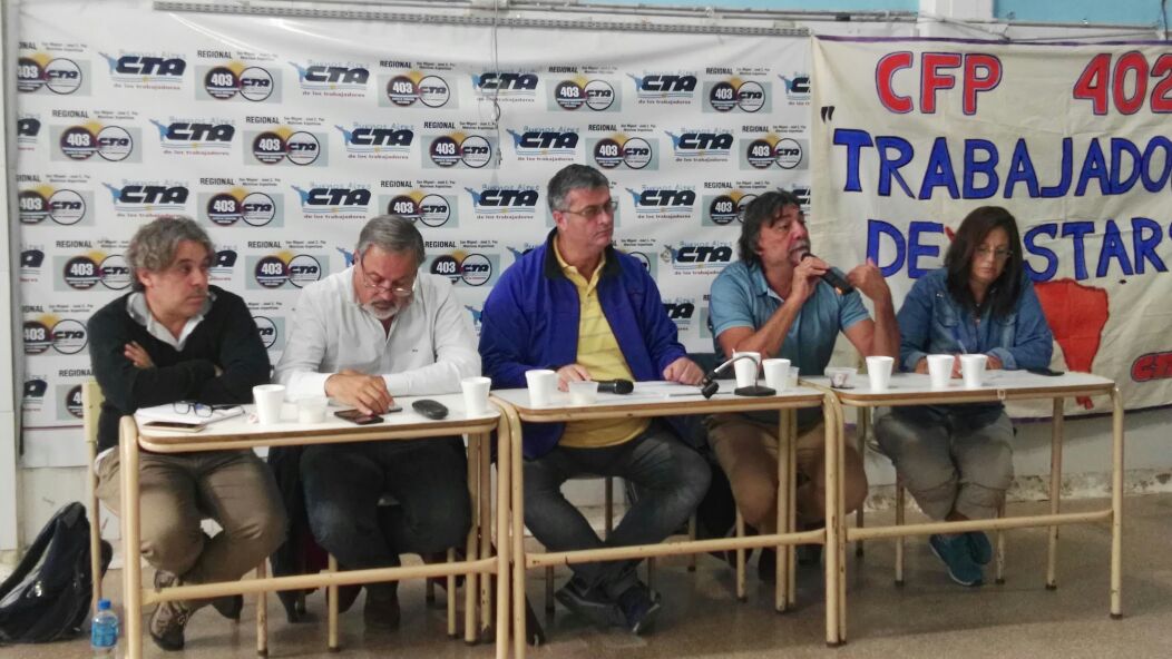 El día de hoy se desarrolló en el CFP 403 de General Sarmiento una asamblea de los Centros de Formación Profesional para aunar criterios de lucha y consensuar acciones colectivas para enfrentar el traspaso de los centros a la órbita del Ministerio de Trabajo.