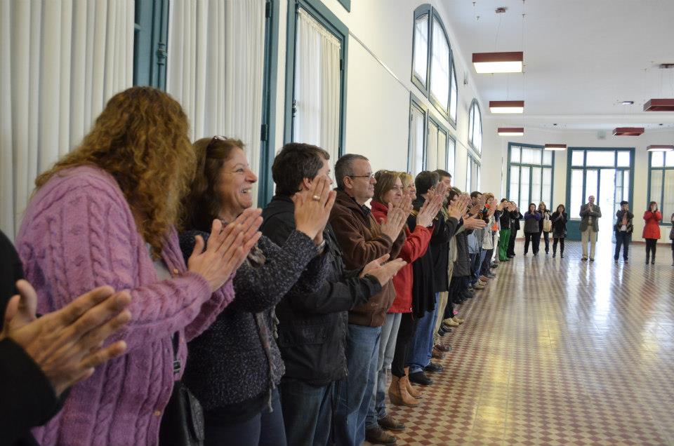 Luego de escuchar a algunos de los referentes del SUTEBA local -Gustavo Santos Ibañez, Sec. de Organización, Graciela Ramundo - Sec de Formación Político-sindical y Zulema Casanova, Secretaria General-, los docentes trabajaron en comisiones sobre la historia sindical y discutieron sobre los principales hitos que marcaron la lucha docente. Estas conclusiones fueron plasmadas en siluetas humanas que representaban la identidad del delegado docente y su rol.
