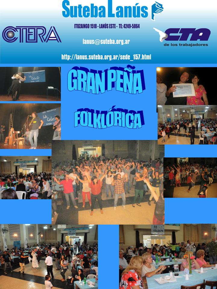 EL SÁBADO 27/4 MÁS DE 400 COMPAÑEROS COMPARTIMOS LA ALEGRÍA EN LA PEÑA FOLKLÓRICA DE SUTEBA LANÚS REALIZADA EN EL CENTRO COMERCIAL.