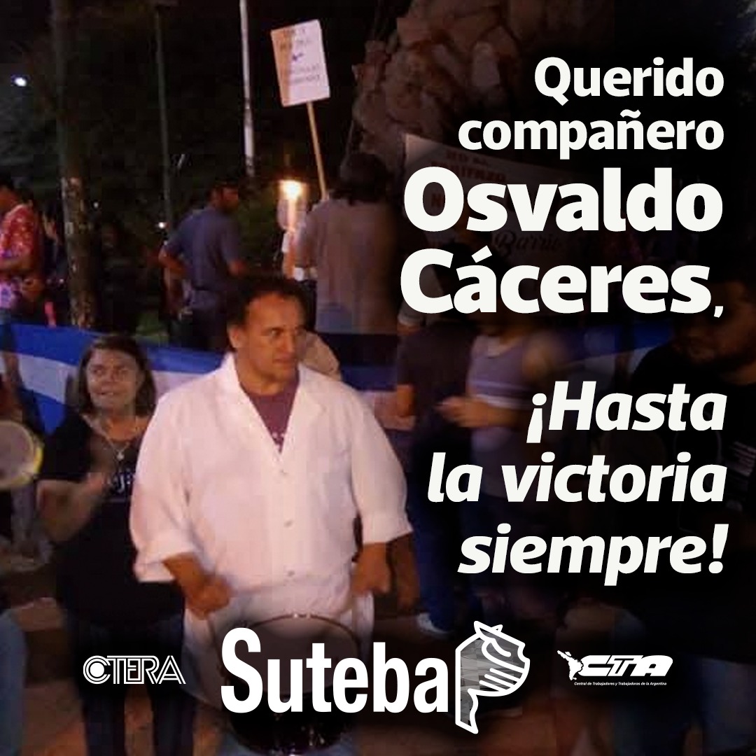 Desde el SUTEBA despedimos con profundo dolor a Osvaldo Cáceres, compañero y ejemplo de militancia, compromiso y generosidad con lxs más débiles.