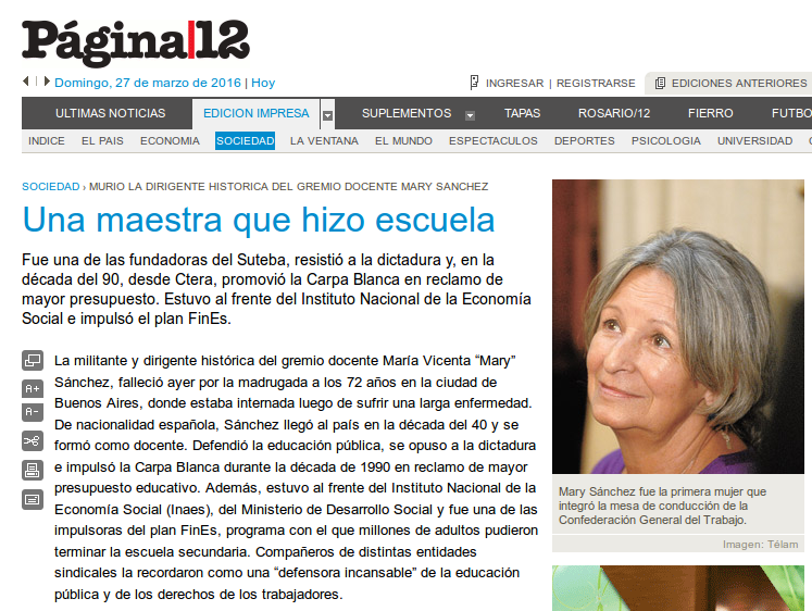Nota en Página 12 "Una maestra que hizo escuela" ver ACÁ