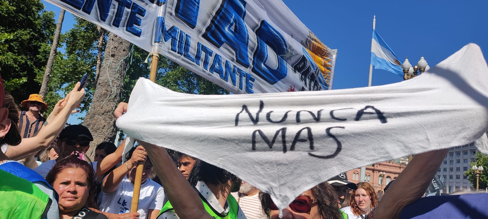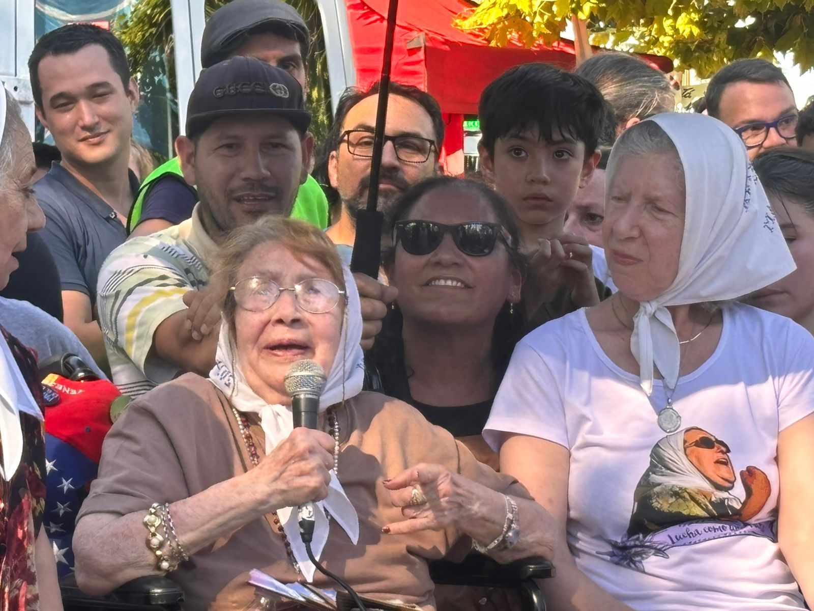 En el contexto de un Gobierno Nacional que avanza en el desmantelamiento y desarticulación de las políticas públicas de Memoria, Verdad y Justicia, profundizando discursos y acciones negacionistas, y que pretende liberar a los genocidas, promoviendo y militando posturas que reivindican el terrorismo de Estado desplegado por la última dictadura cívico militar, las Madres siguen demostrando, con la valentía y el coraje intactos desde hace 48 años, que la única lucha que se pierde es la que se abandona, y que, junto al Pueblo que las sigue abrazando con fuerza, continuaremos en el camino de amor y lucha inclaudicable que Hebe y nuestras queridas Madres y Abuelas nos siguen marcando, en defensa de la Democracia y los Derechos Humanos, por el derecho a la Verdad y la Identidad y la continuidad de los juicios de Lesa Humanidad.