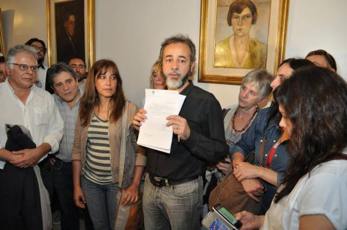 El Secretario Gremial de CTERA, Eduardo López inició la reunión diciendo "venimos a reclamar algo que por derecho nos corresponde, los cuadros que han sacado son parte de la memoria colectiva y de lo que los Docentes enseñamos en las escuelas levantando las banderas de la Memoria, la Verdad y la Justicia".Asimismo expresó el profundo malestar y rechazo que había causado en la docencia el retiro de los cuadros de tres dirigentes emblemáticos, solicitando una explicación y el pedido de restitución inmediata de los mismos.