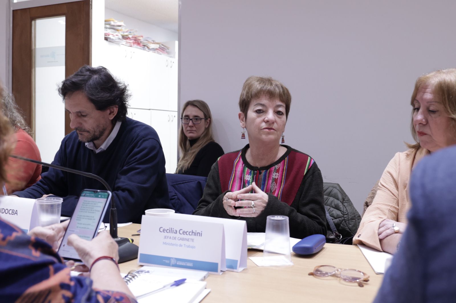 Estuvieron presentes las delegadas paritarias María Laura Torre y Marcela Escobar, Secretaria General Adjunta y Secretaria Gremial del SUTEBA, y la asesora legal Graciela Pauloni.