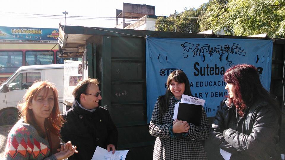 En este acto estuvieron presentes Claudia Martinez Cuenca, Sec. de DDHH, y Jose Luis Nogueira, Secretario General de Suteba San Martín y Tres de Febrero, además el Cro. Eduardo Alonso, Secretario General de la CTA Regional, y Mario Sieben, Sec. Adjunto. Se hizo presente además el abogado querellante y periodista Pablo Llonto.
