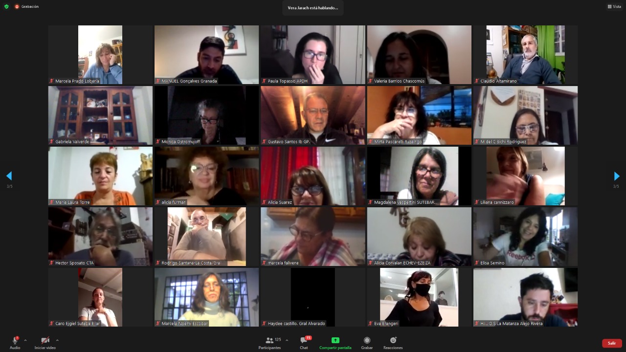 El acto contó con la presencia de Estela de Carlotto, Taty Almeida, Vera Jarach y representantes de otros Organismos de Derechos Humanos. Abriendo la reunión, Mónica Grandoli presentó a lxs participantes: Abuelas de Plaza de Mayo, Abuelas Educación, Madres de Plaza de Mayo Línea Fundadora, Hijos Provincia de Buenos Aires, Hijos Capital, Lxs 12 de la Santa Cruz, CELS, Manuel Gonçalves, nieto restituido, representantes de la Asamblea Permanente por los Derechos Humanos, integrantes de la Comisión por la Memoria, la Verdad y la Justicia de Zona Norte, representantes de la CTA de la provincia de Buenos Aires, la senadora provincial María Reigada, Docentes, Profesorxs, Maestrxs y Estudiantes.