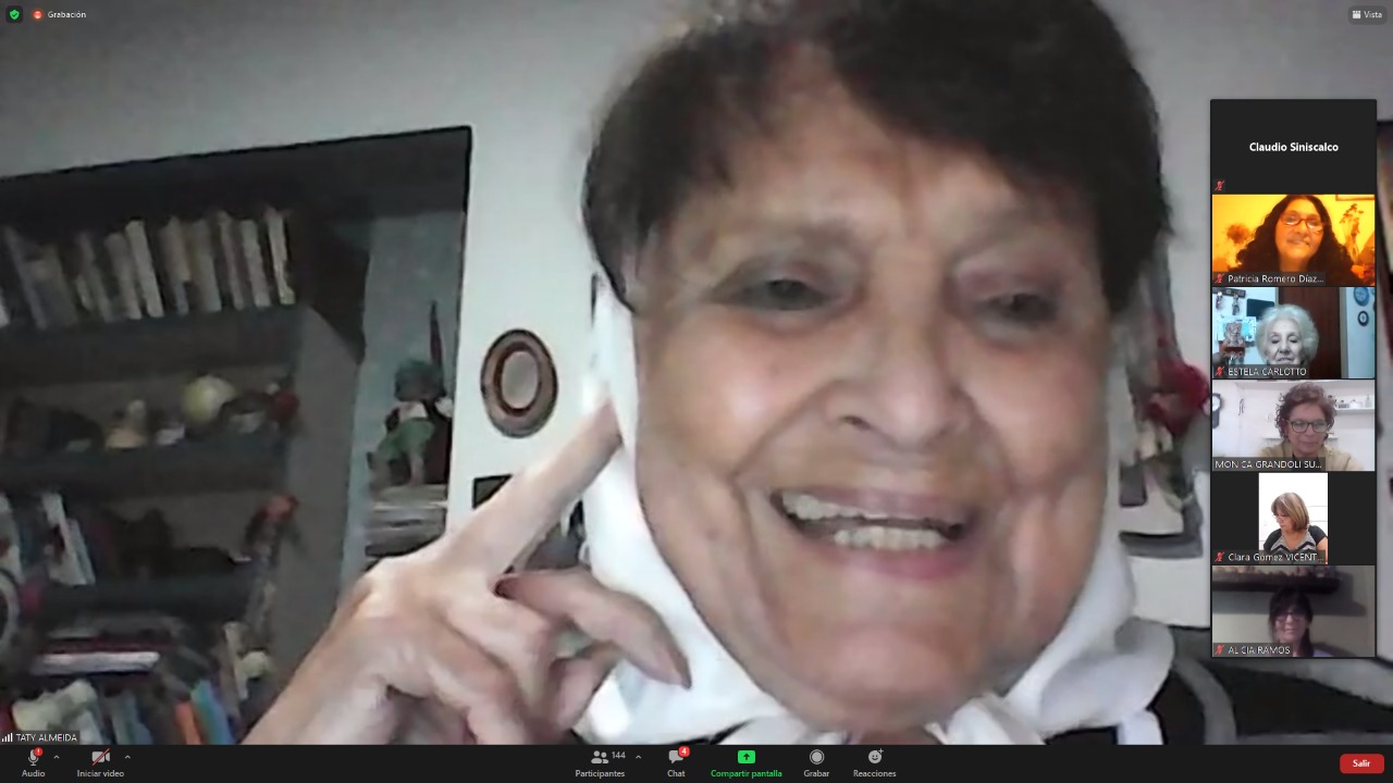Finalmente, habló Vera Jarach: "Nosotras fuimos a la Plaza, y eso es lo que hay que hacer. Cuando hay censura, cuando parece que todo está cerrado, queda algo: la plaza, la calle, ahí es donde hay que ir. Fuimos un movimiento de resistencia. En toda la historia de la humanidad, estas tragedias, las guerras, las persecuciones, los genocidios, todo se repite. Hay que estar muy prevenidxs, muy atentxs. La clave es la unión, la participación, proteger nuestras democracias, que nos dan la posibilidad de actuar".