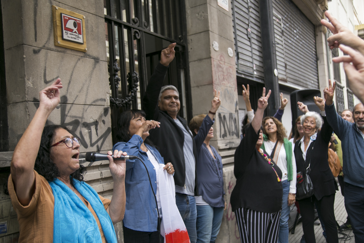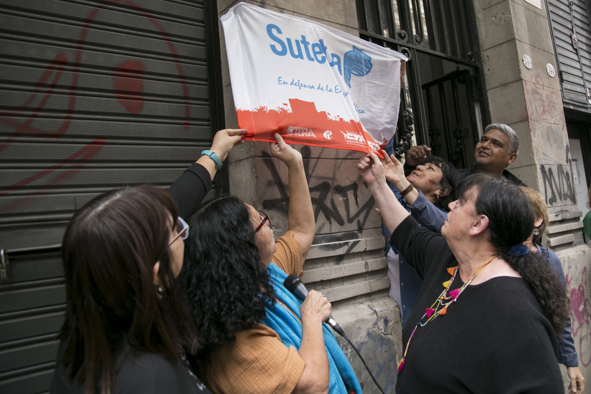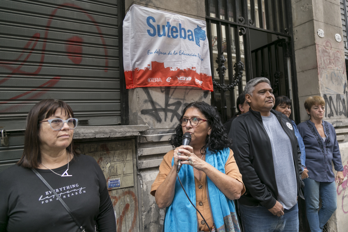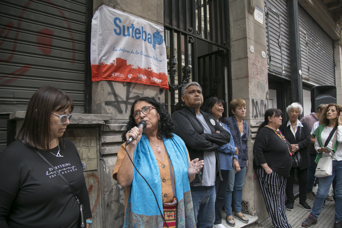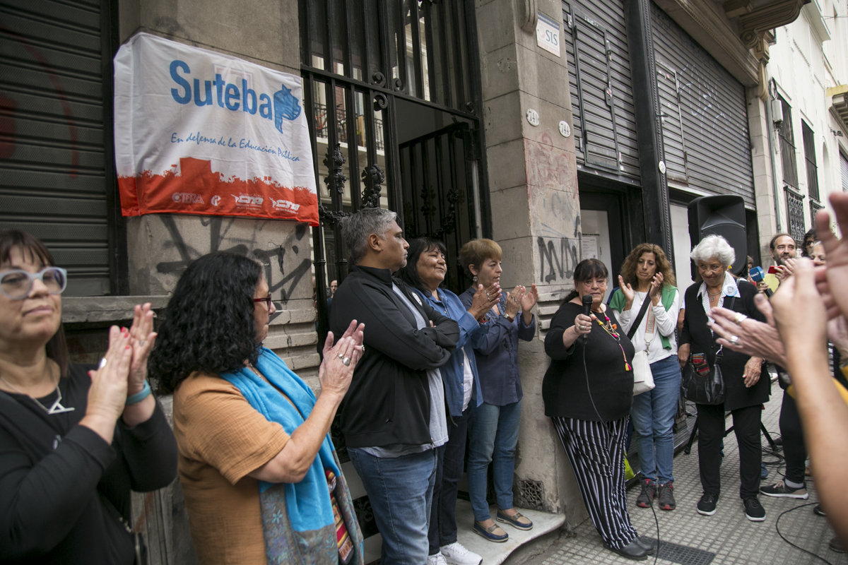 Abrió el emotivo acto Patricia Romero Díaz, Secretaria de Derechos Humanos de nuestro Sindicato, quien señaló: "Vamos a señalizar hoy nuestra Sede Central para poner una huella, una marca de Memoria en nuestra Sede Sindical, como una manera de ratificar el compromiso que asumimos hace 37 años, en aquel Congreso constitutivo del SUTEBA donde colocamos una silla vacía en representación de nuestrxs 30.000 compañerxs detenidxs desaparecidxs. Ese fue nuestro sello de orígen, nuestro ADN".