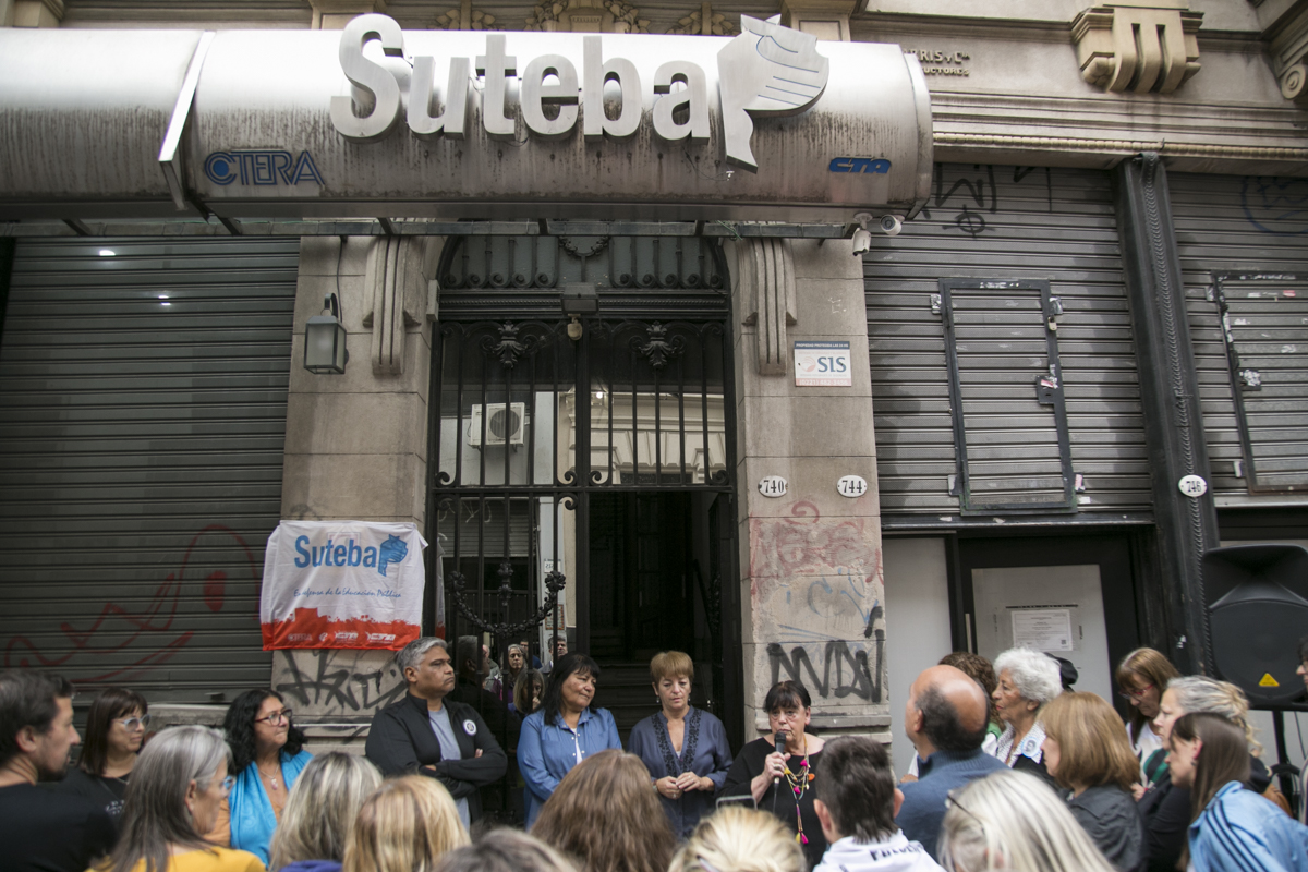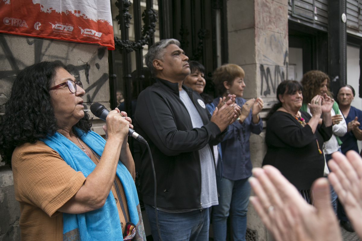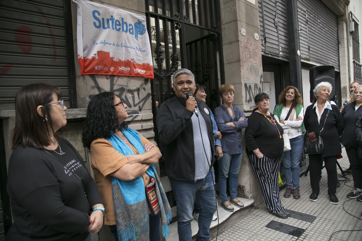 Luego dirigieron un mensaje María Adela Antokoletz, de Madres Línea Fundadora; y Lucas Asenjo, de H.I.J.O.S. Capital, quienes destacaron la trayectoria del SUTEBA en la lucha por Memoria, Verdad y Justicia.