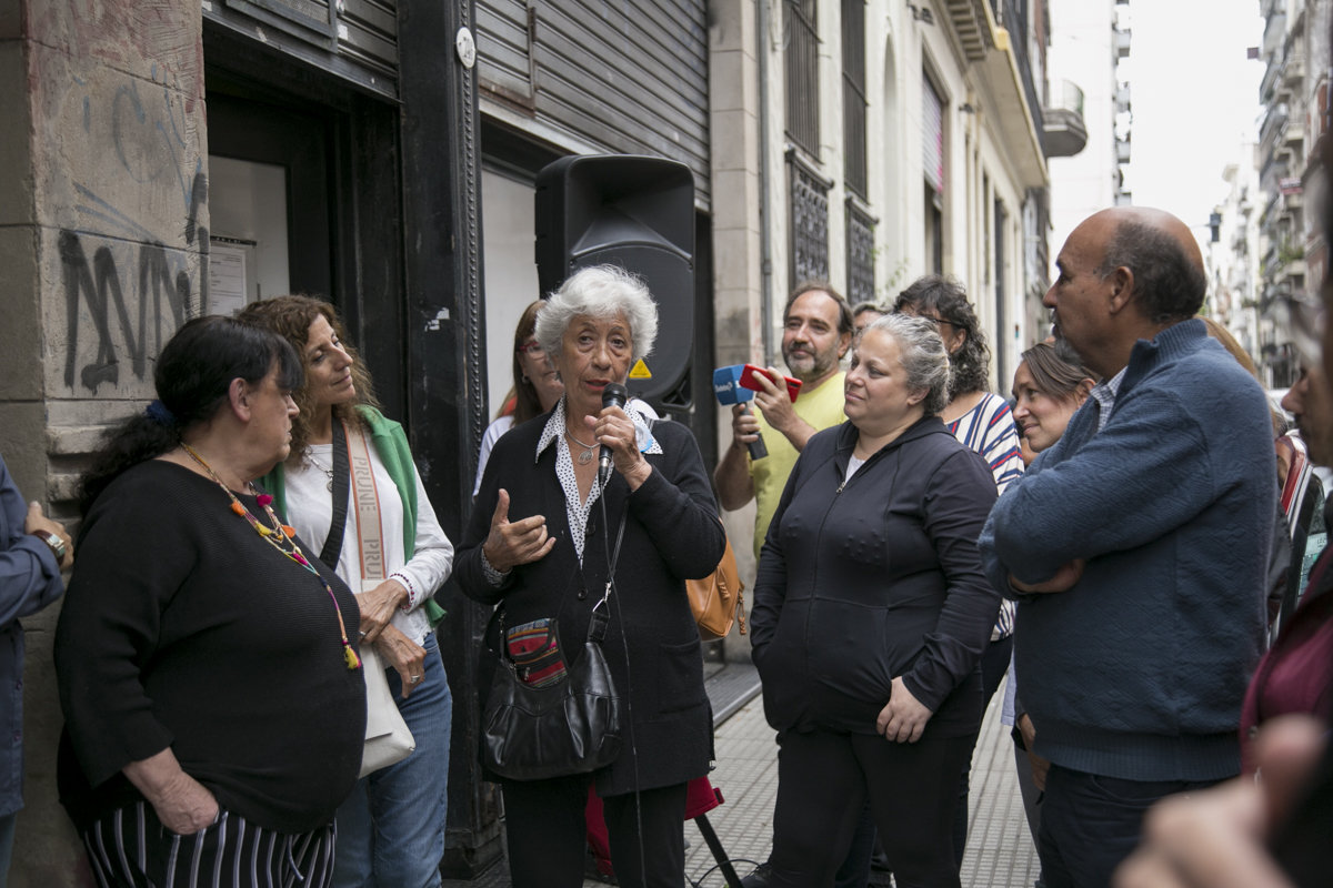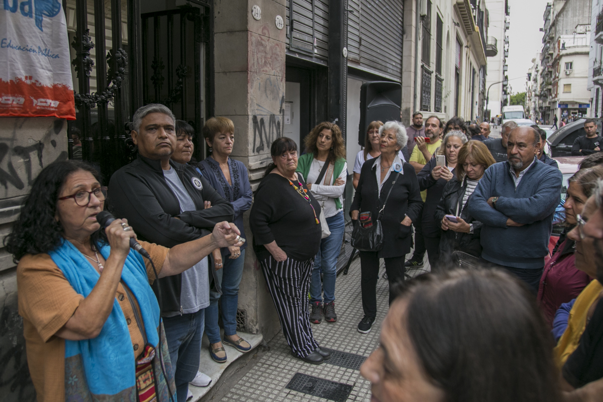 La segunda parte del acto tuvo lugar en el interior del edificio de Piedras 740, donde se descubrió un mosaico con el pañuelo de las Madres. Alli, Silvia Almazán, Secretaria General Adjunta, subrayó: "Además de la señalización, para que todxs lxs que pasen por la vereda sepan cuál es el compromiso de nuestra Organización, queríamos también, en esta jornada, dejar un primer testimonio de la lucha de lxs Trabajadorxs de la Educación. Para nosotrxs son historias de vida, de lucha, de militancia, y en nuestro caso, como Trabajadorxs de la Educación, son historias de compromiso con la Educación Pública".