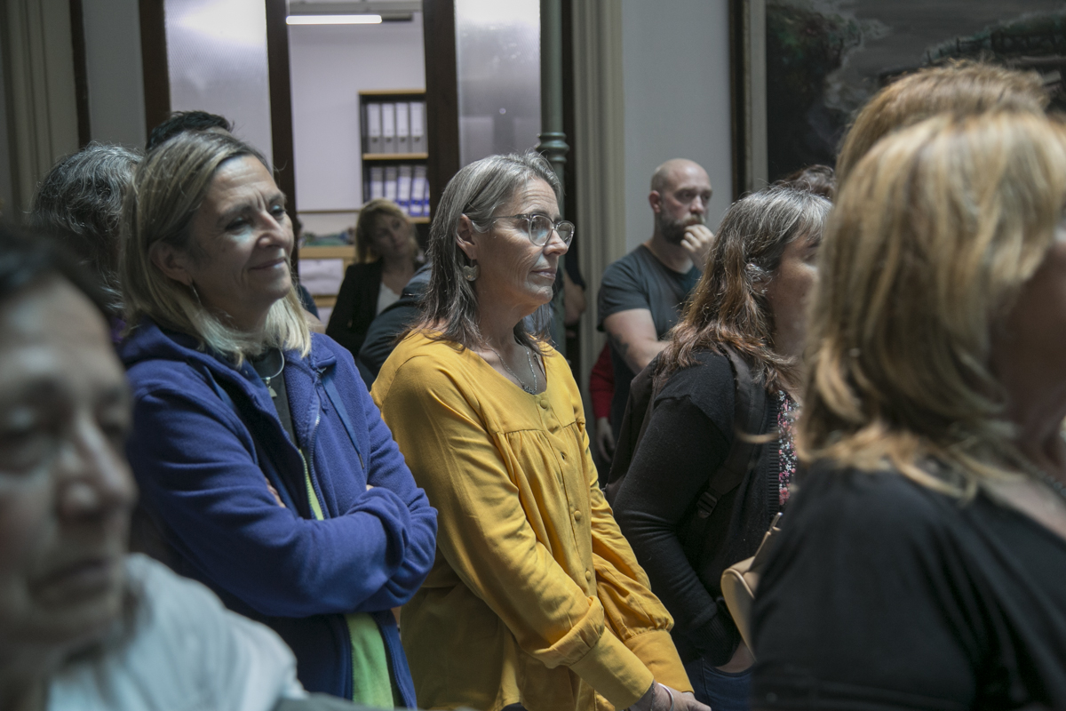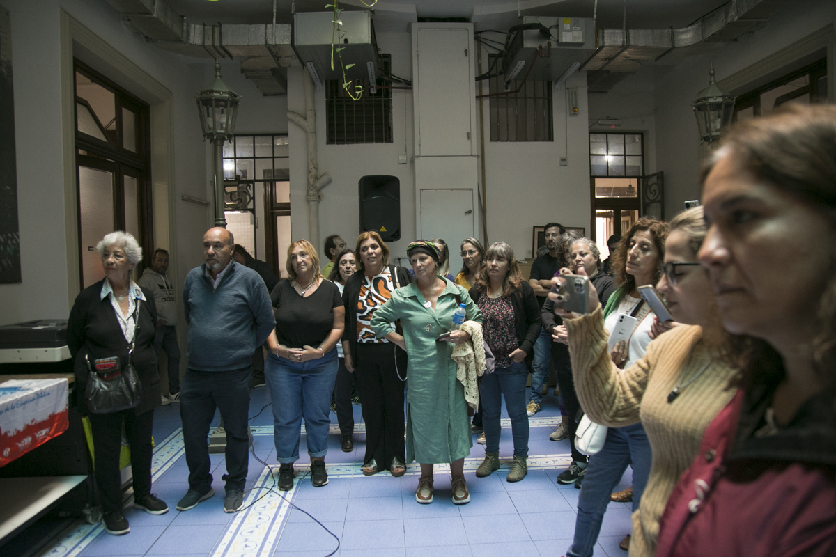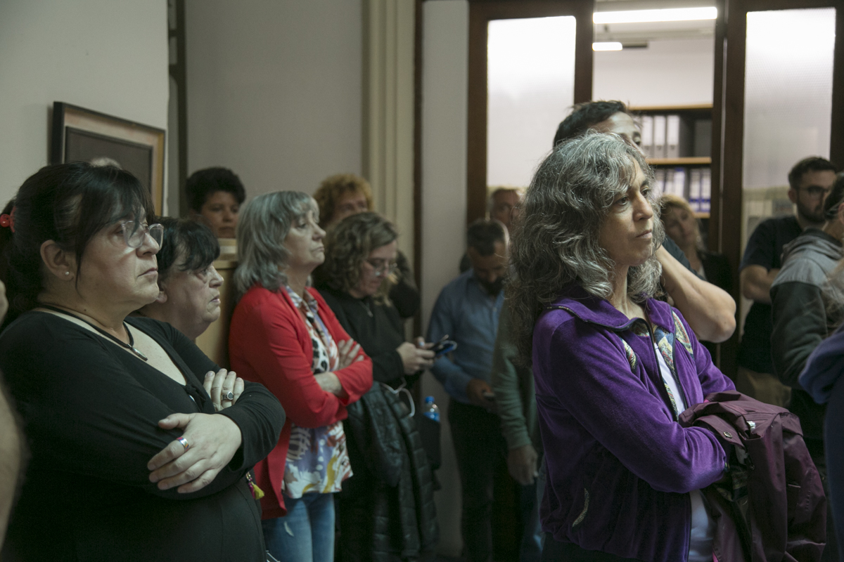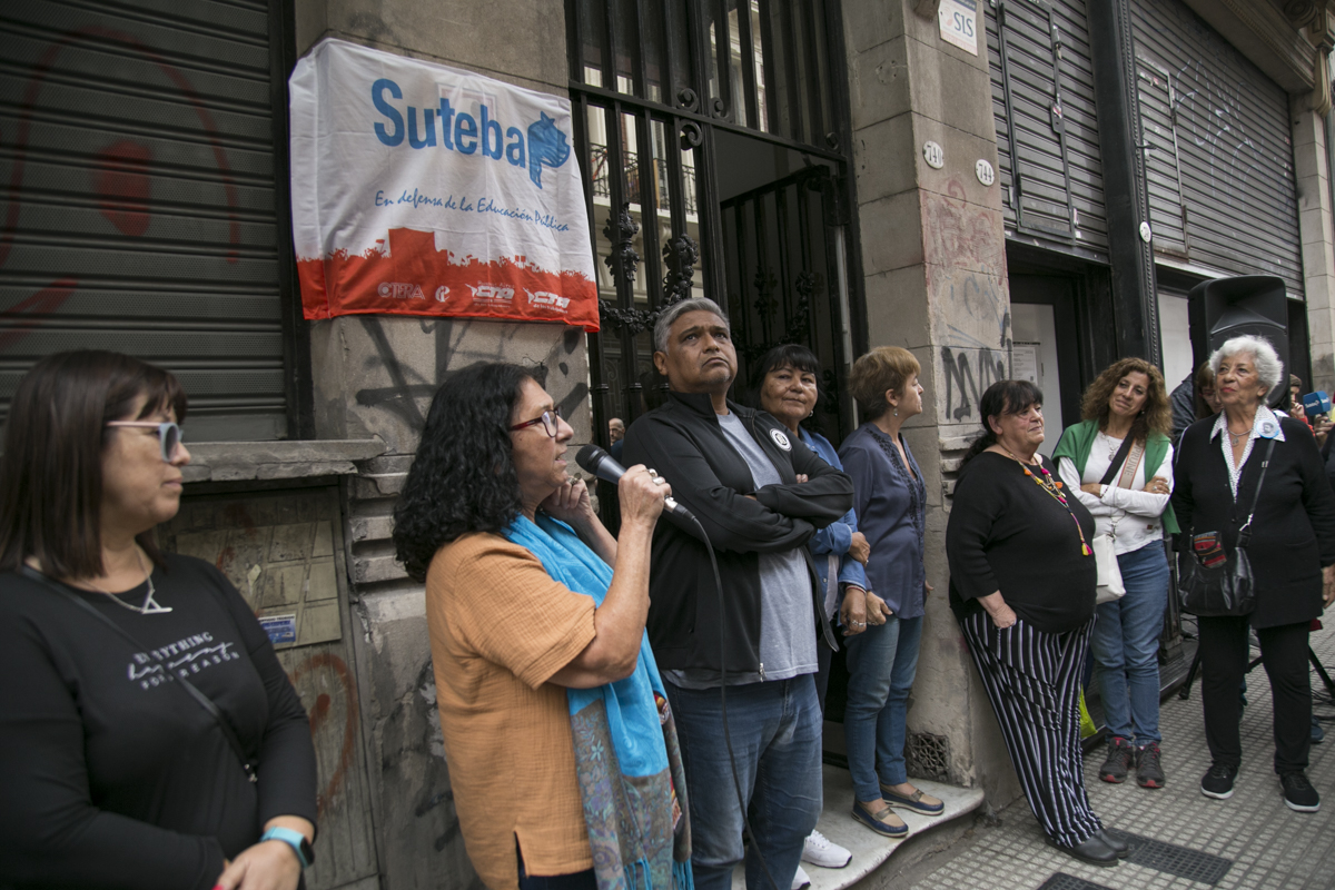 "Hay un registro que venimos haciendo desde el SUTEBA, vinculado también a un trabajo de la CTERA, y tenemos hasta el momento más de 450 Trabajadorxs de la Educación que se comprometieron en aquellos años 70 en la construcción de un mundo más justo y solidario. Esto que vamos a descubrir acá es ese testimonio. Y vamos a incorporarle más adelante los nombres de cada unx de lxs compañerxs Trabajadorxs de la Educación".