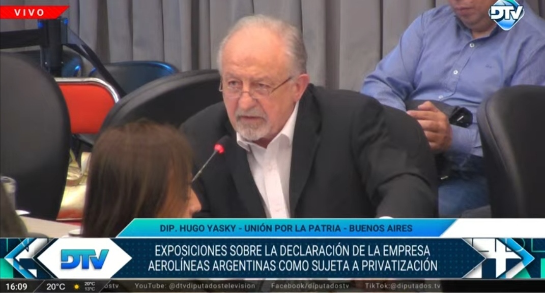 Exposición del Diputado Nacional y Secretario General de la CTA-T, Hugo Yasky, en la Comisión de Transporte de la HCDN, sobre la declaración de la empresa Aerolíneas Argentinas como sujeta a privatización: